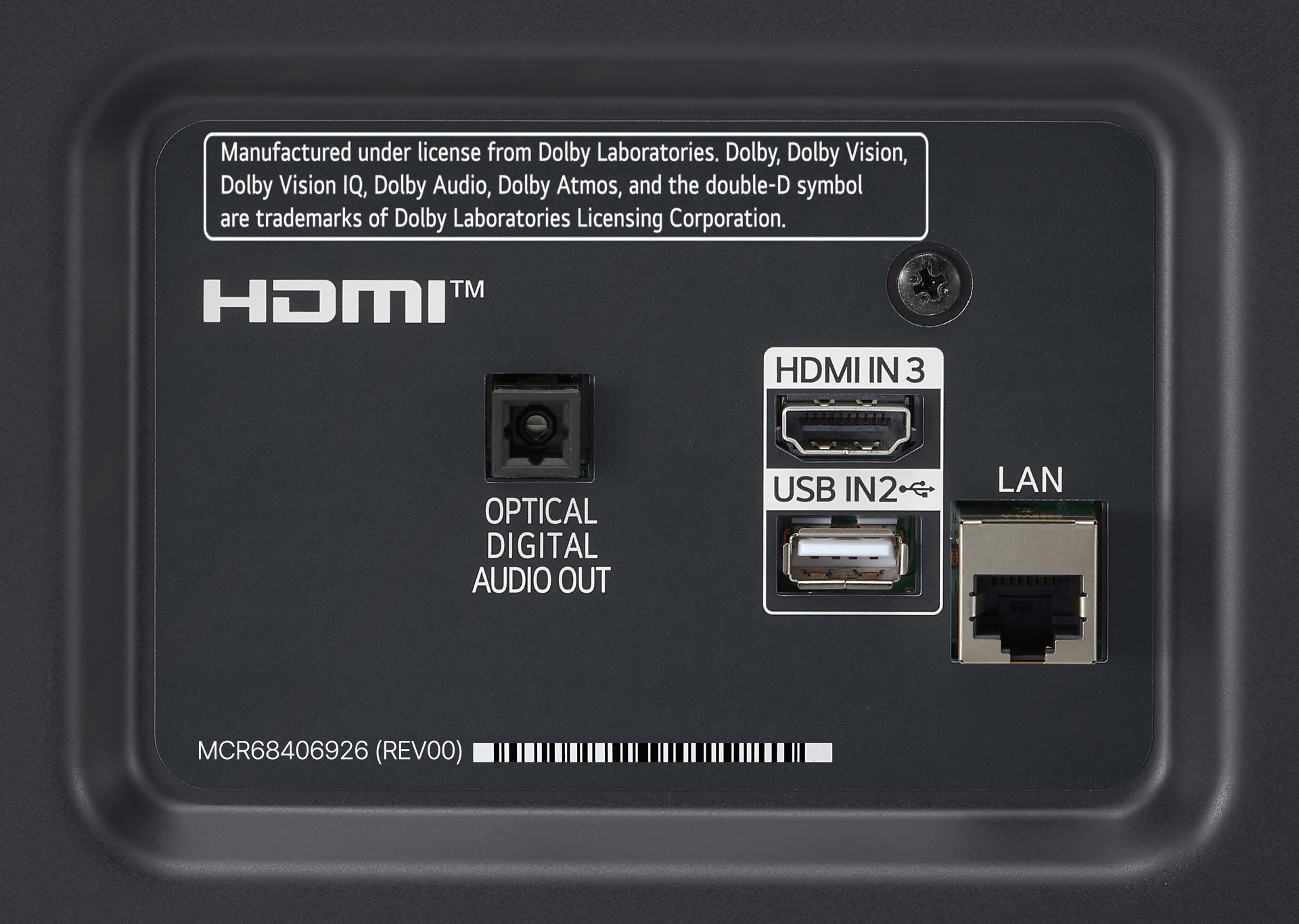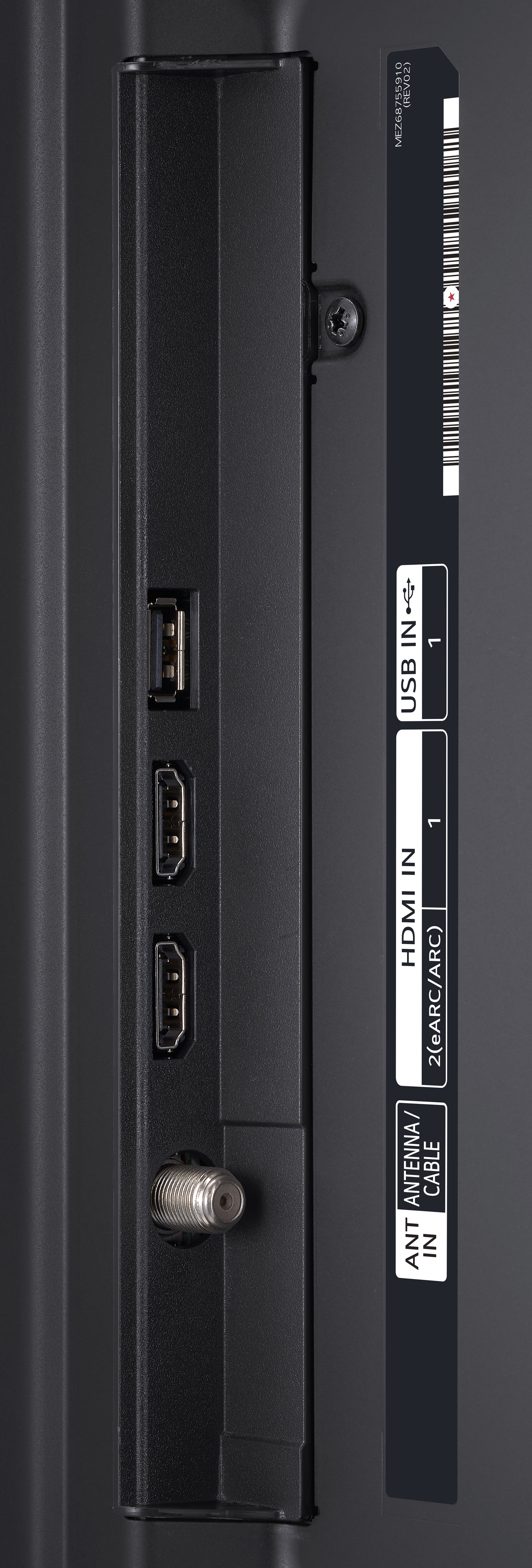 Задняя панель телевизора LG NANO82 оснащена следующими интерфейсами: один порт LAN (со скоростью 100 Мбит/сек), один порт USB (версии 2.0) и один разъем HDMI 2.0. Что касается аудио, то на этой же панели расположен только оптический аудиовыход, выход 3,5" для наушников отсутствует.