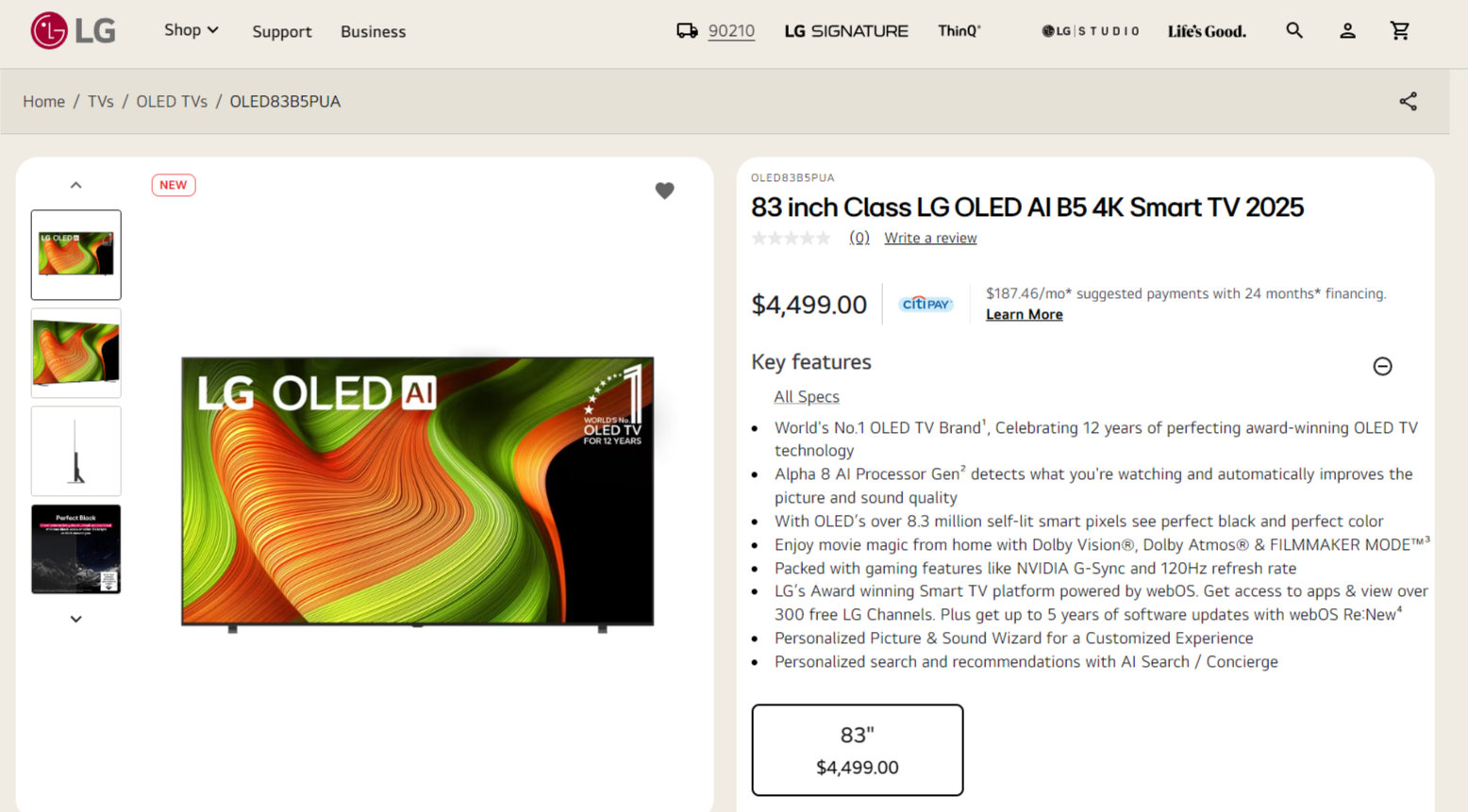 На сайте LG в США предлагается 83-дюймовый вариант B5 - 83B5