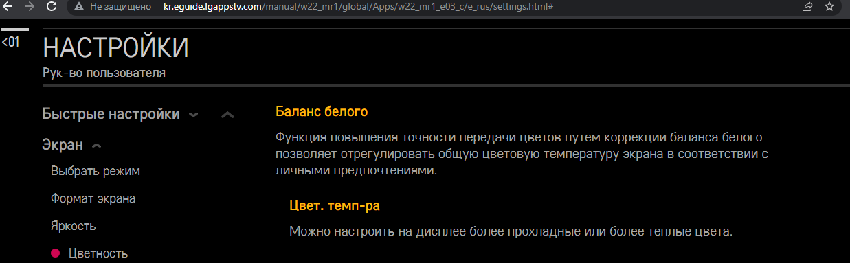 онлайн-версией Руководства пользователя для 7-й webOS, могу лишь предположить, что как раз в свежей webOS отсутствует/убрана возможность регулировки Цветовой температуры в Балансе белого по предустановленным "режимам"/пресетам