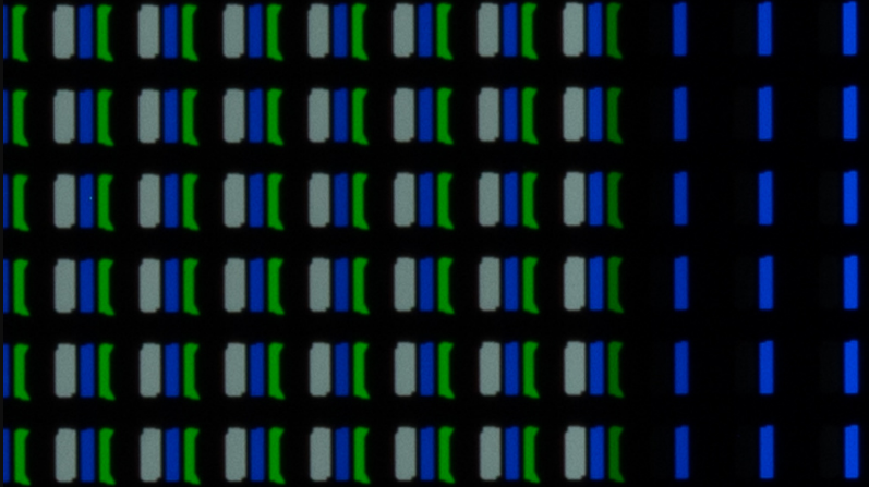 К сожалению, есть несколько вертикальных цветных полос и розовый оттенок с обеих сторон экрана. Похоже, это обычная проблема с новой технологией панели, используемой LG Display, и это не дефект нашего конкретного устройства. Нет никаких признаков структуры сетки, которая затронула некоторые единицы 2021 года, а также никаких признаков «эффекта венецианских жалюзи», и это здорово. Как и почти на всех OLED-дисплеях, в очень темных сценах есть слабые вертикальные линии.