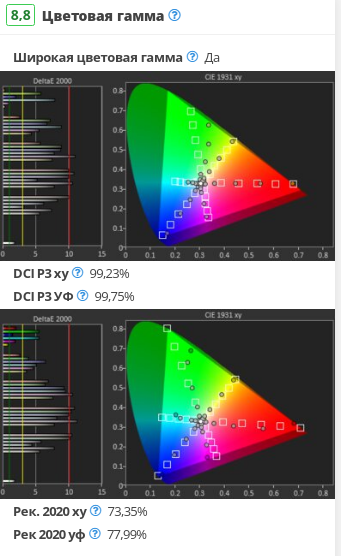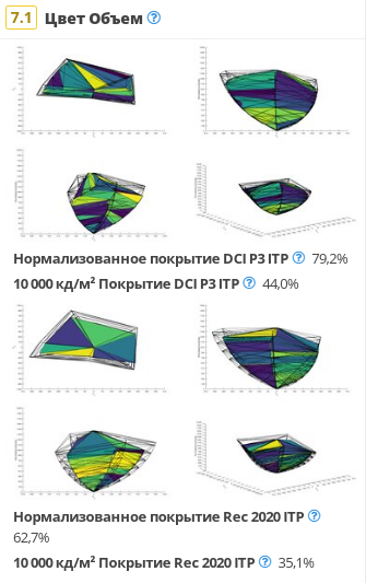 К сожалению, LG C2 OLED имеет лишь приличный цветовой объем. Несмотря на повышенную пиковую яркость, цвета не такие яркие