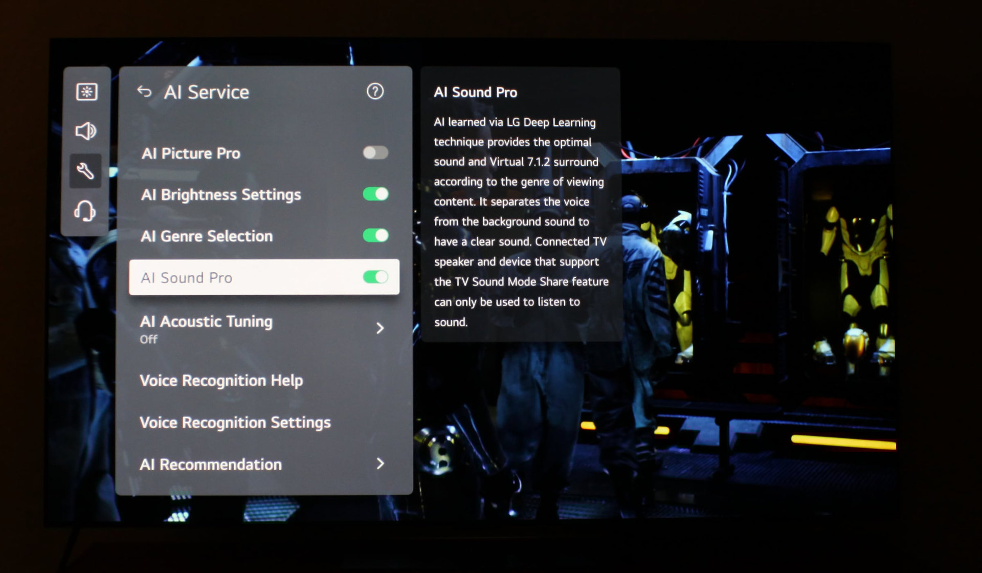 LG внедрила другие новые системы, такие как функция калибровки помещения (AI Acoustic Tuning), которая использует микрофон в пульте дистанционного управления для анализа вашего окружения, и это может быть полезно в вашем жилом пространстве. В нашей тестовой комнате, которая имеет идеальную квадратную форму и покрыта ковром, калибровка не привела к заметным изменениям звука. «Автоматическая регулировка громкости» делает то, что говорит название, но она еще не точна, поэтому после нашего тестирования мы предпочли отключить ее, что является опцией по умолчанию. Вероятно, это будет зависеть от того, какой телевизор и потоковые источники вы используете.