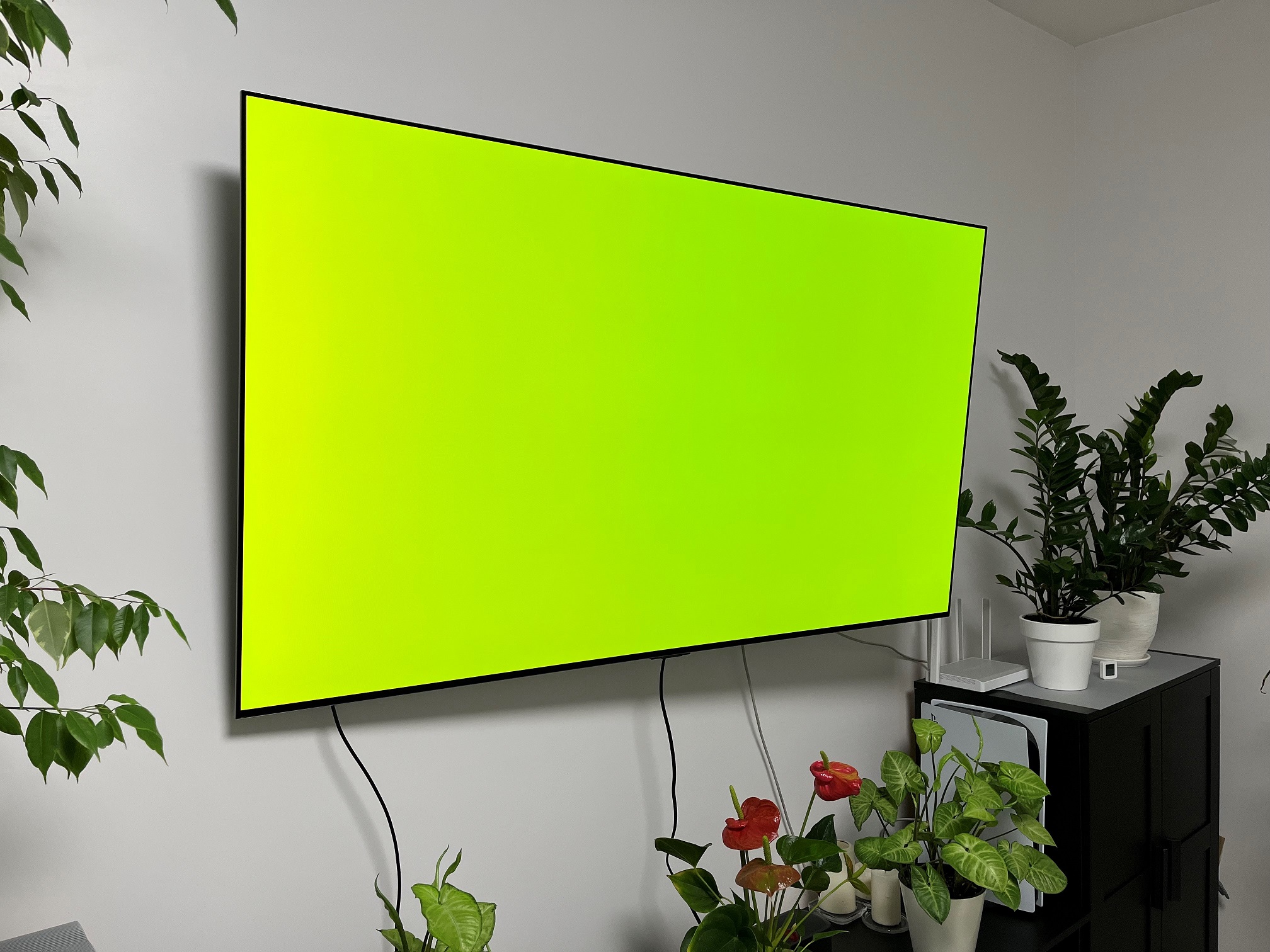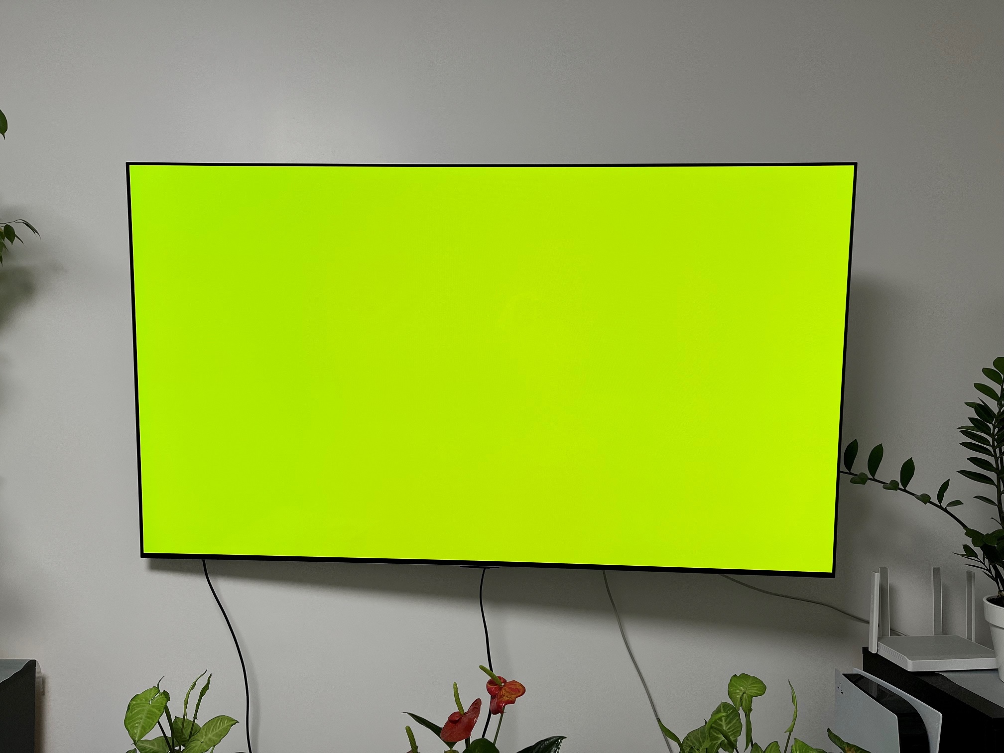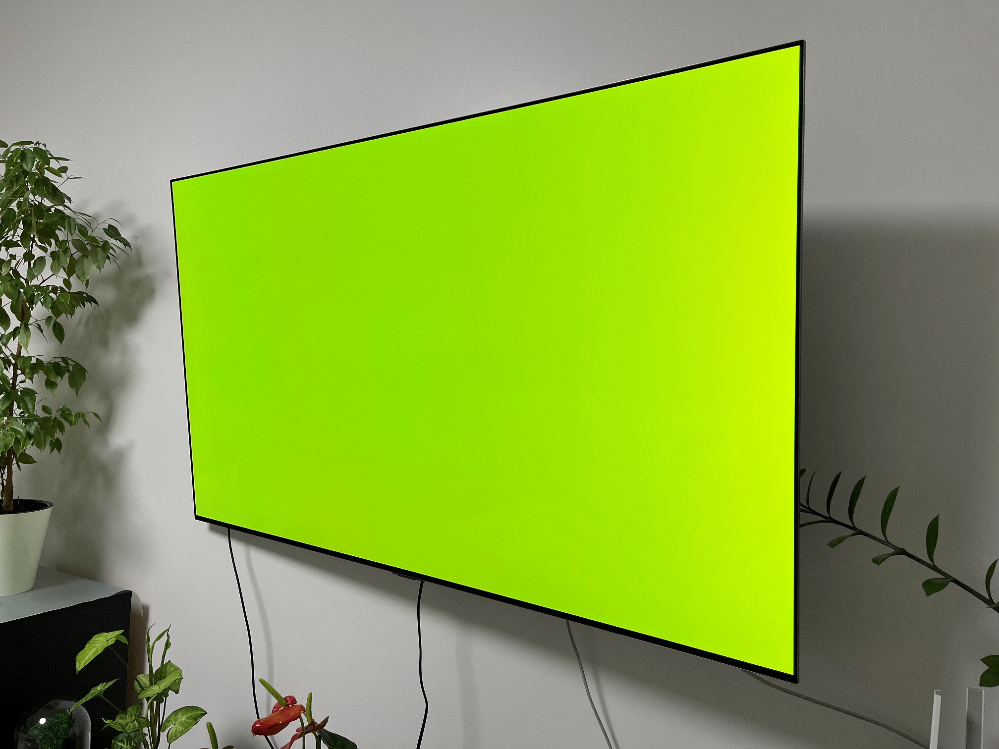 LG OLED65C3RLA желтый цвет под углом - салатовый / зеленый, запуск с флешки