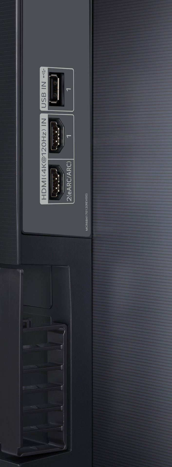 Боковая панель модели 83C3 оснащена двумя входами HDMI v.2.1a (один из которых совместим с ARC и eARC), одним разъемом USB 2.0 и слотом условного доступа CI+.
