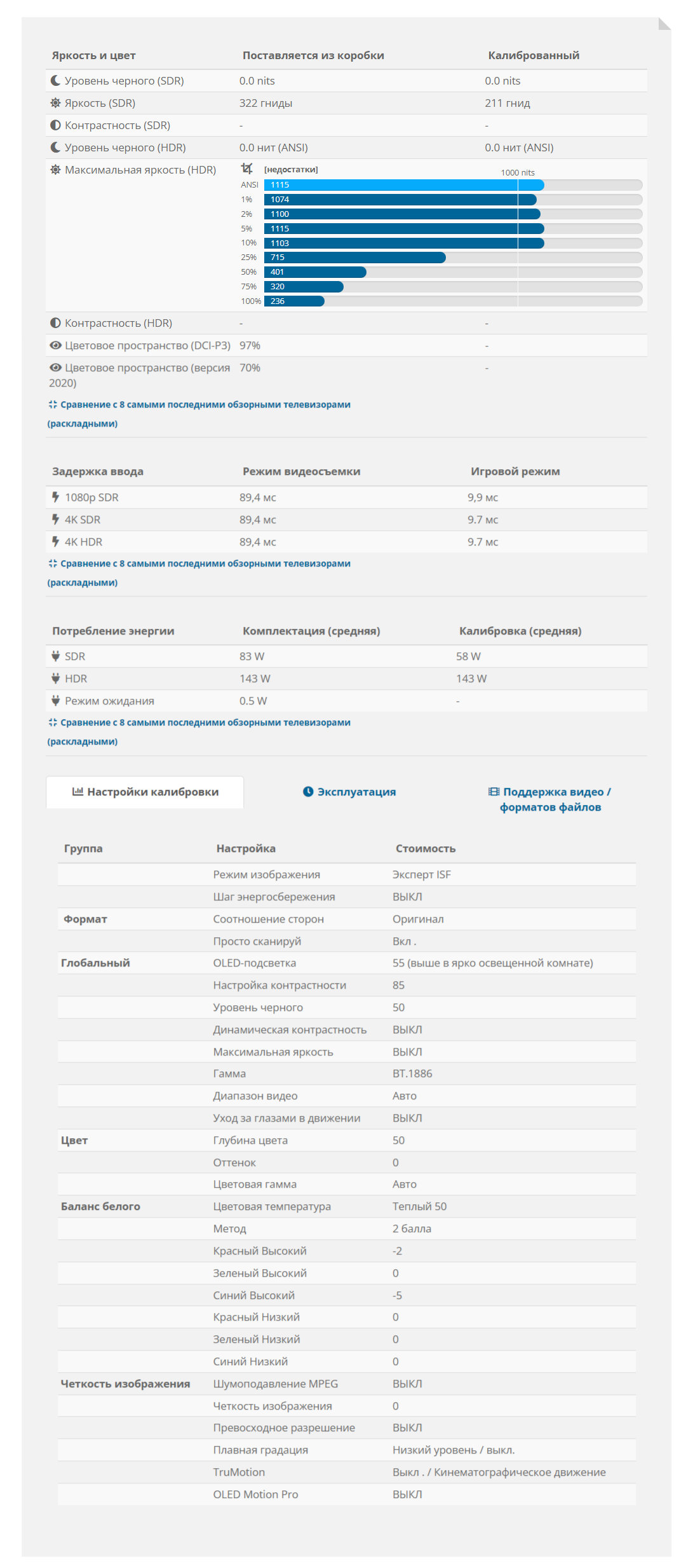 Примечание: Начиная с прошлого года, мы внедрили новый метод измерения среднего энергопотребления в SDR и HDR, что означает, что предыдущие измерения не сопоставимы 1:1. В дальнейшем во всех обзорах телевизоров будет использоваться новый метод.