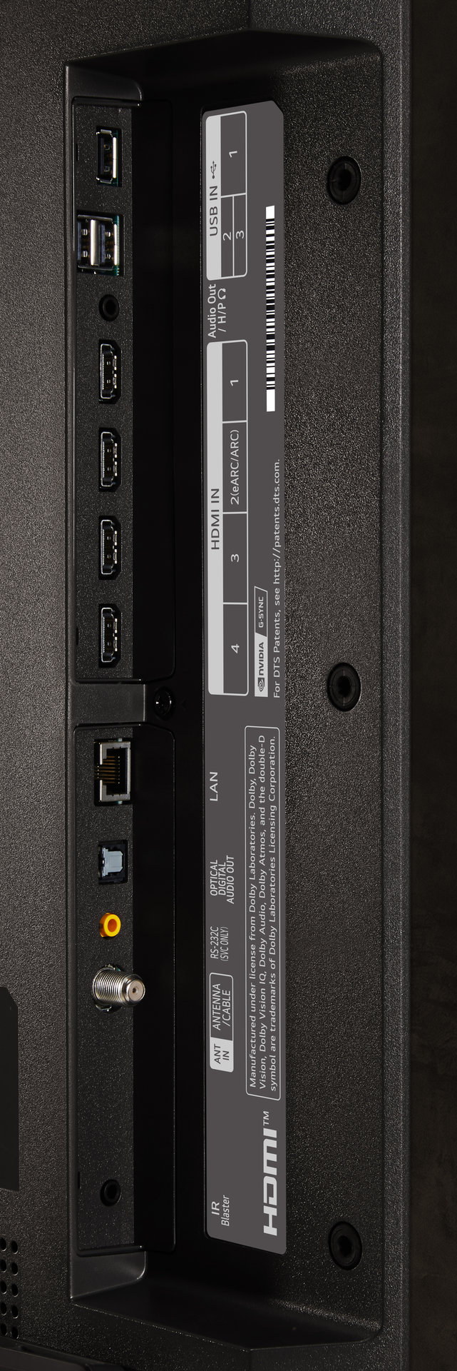 Боковая панель модели 48C4 оснащена тремя входами HDMI v.2.1a (один из которых совместим с ARC и eARC), одним разъемом USB 2.0 и слотом условного доступа CI+.