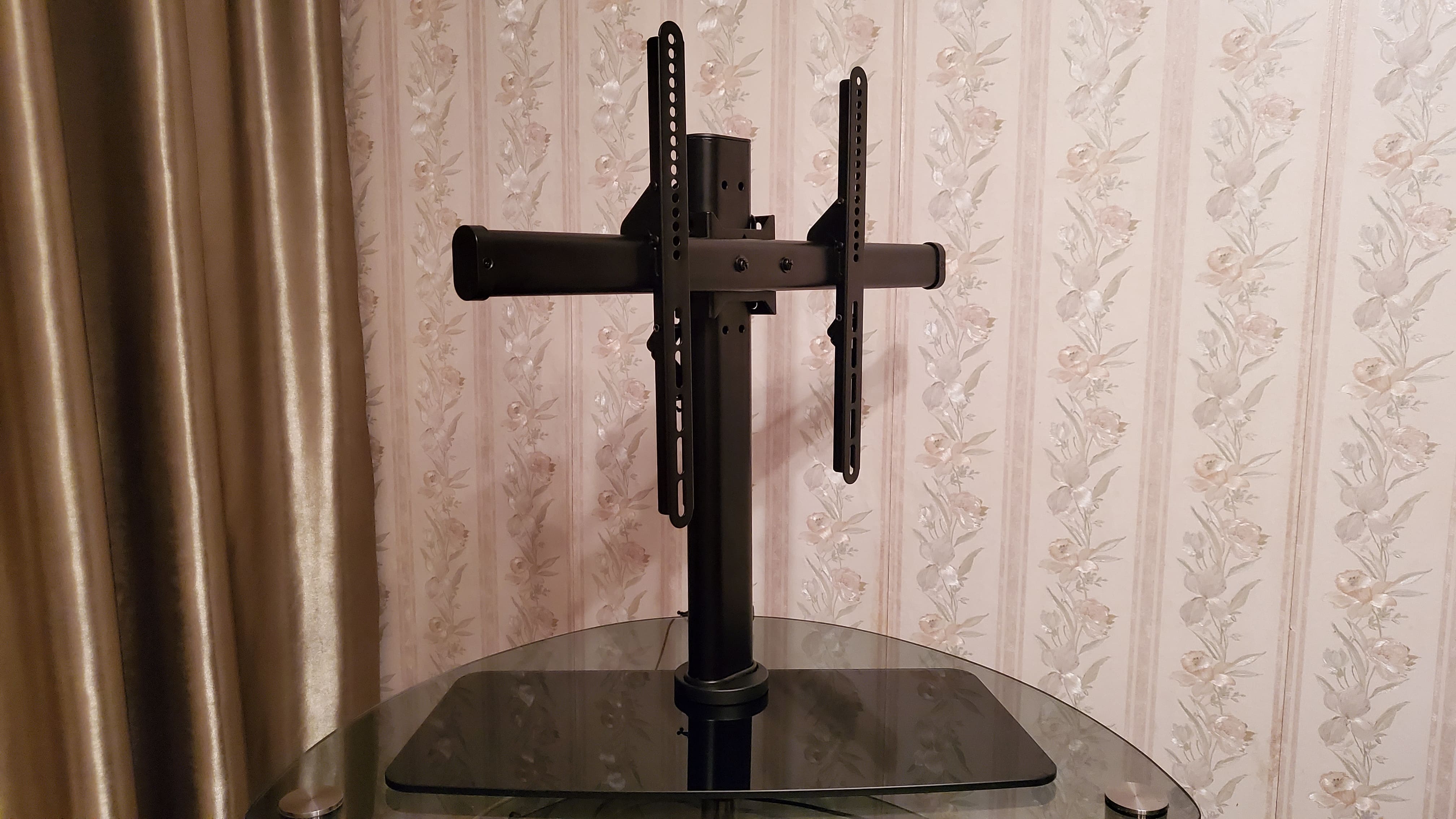 Так же оригинальные ноги, допустим для меня, не удобны тем, что они расположены по самым краям ТВ. И 65G1 не встанет на мою тумбу. Я буду использовать настольный кронштейн KFG-3. Данная модель позволяет вращать ТВ на 90 градусов, я так же осуществлять его наклон.