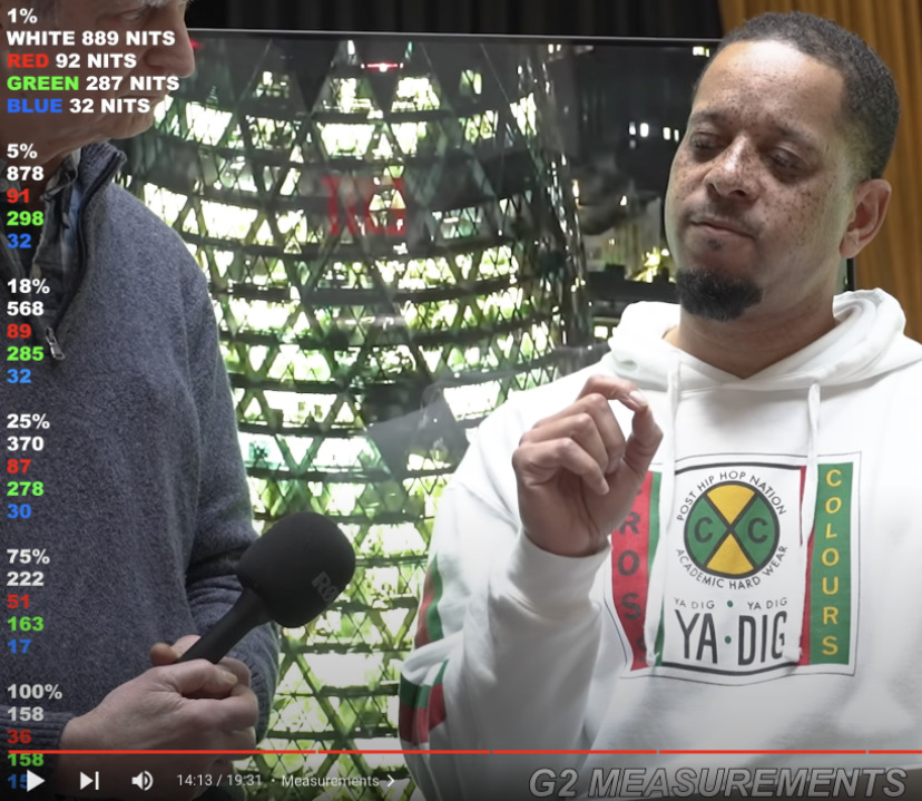 И это не в каком-то сверхярком режиме просмотра, предназначенном для накачки, как некоторые телевизоры достигают своих пиковых значений яркости. Это в режиме Filmmaker Mode, который отключает любые трюки, повышающие контраст, с окном 10%, чего достаточно для некоторых реальных моментов в сцене.
