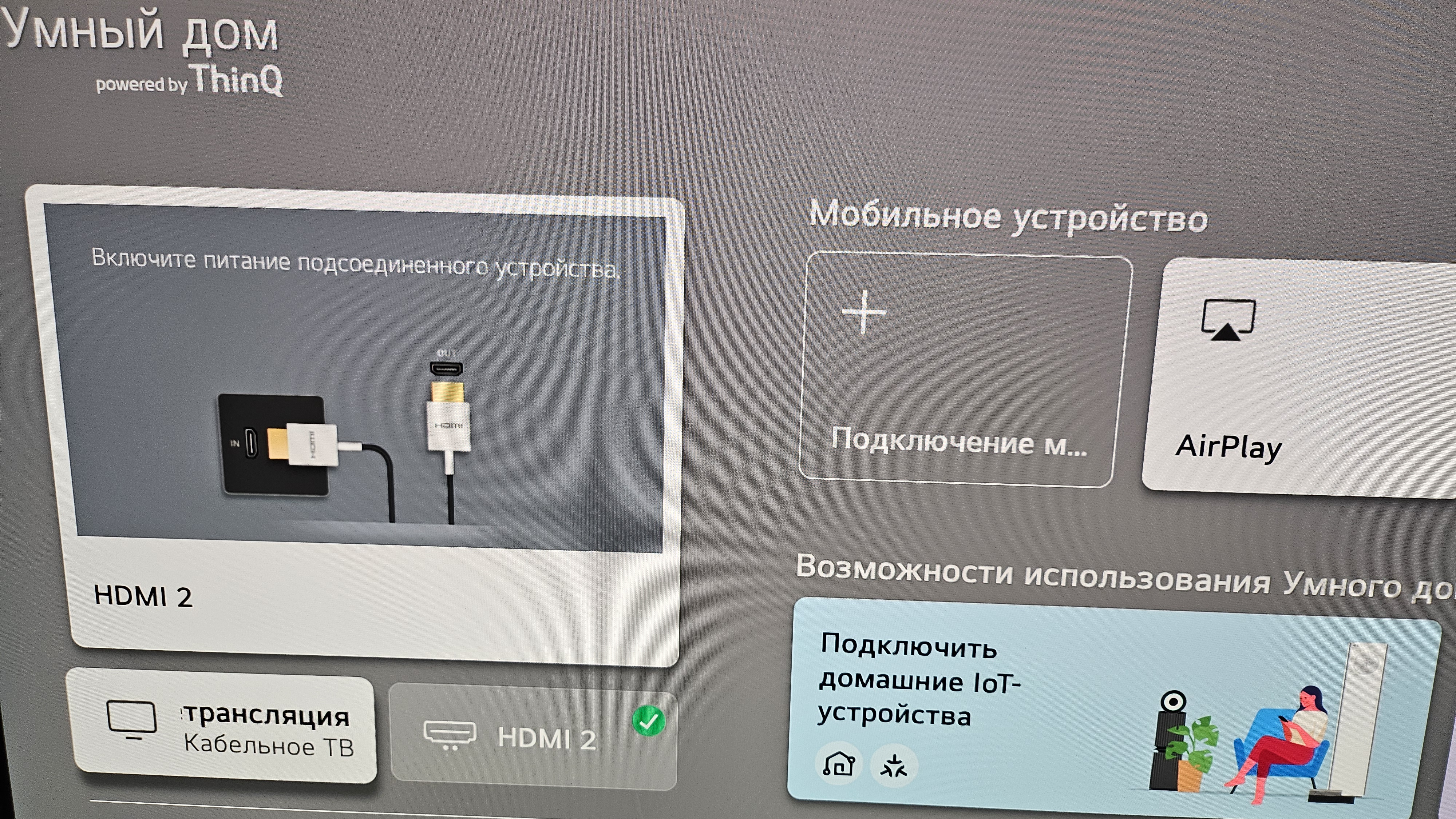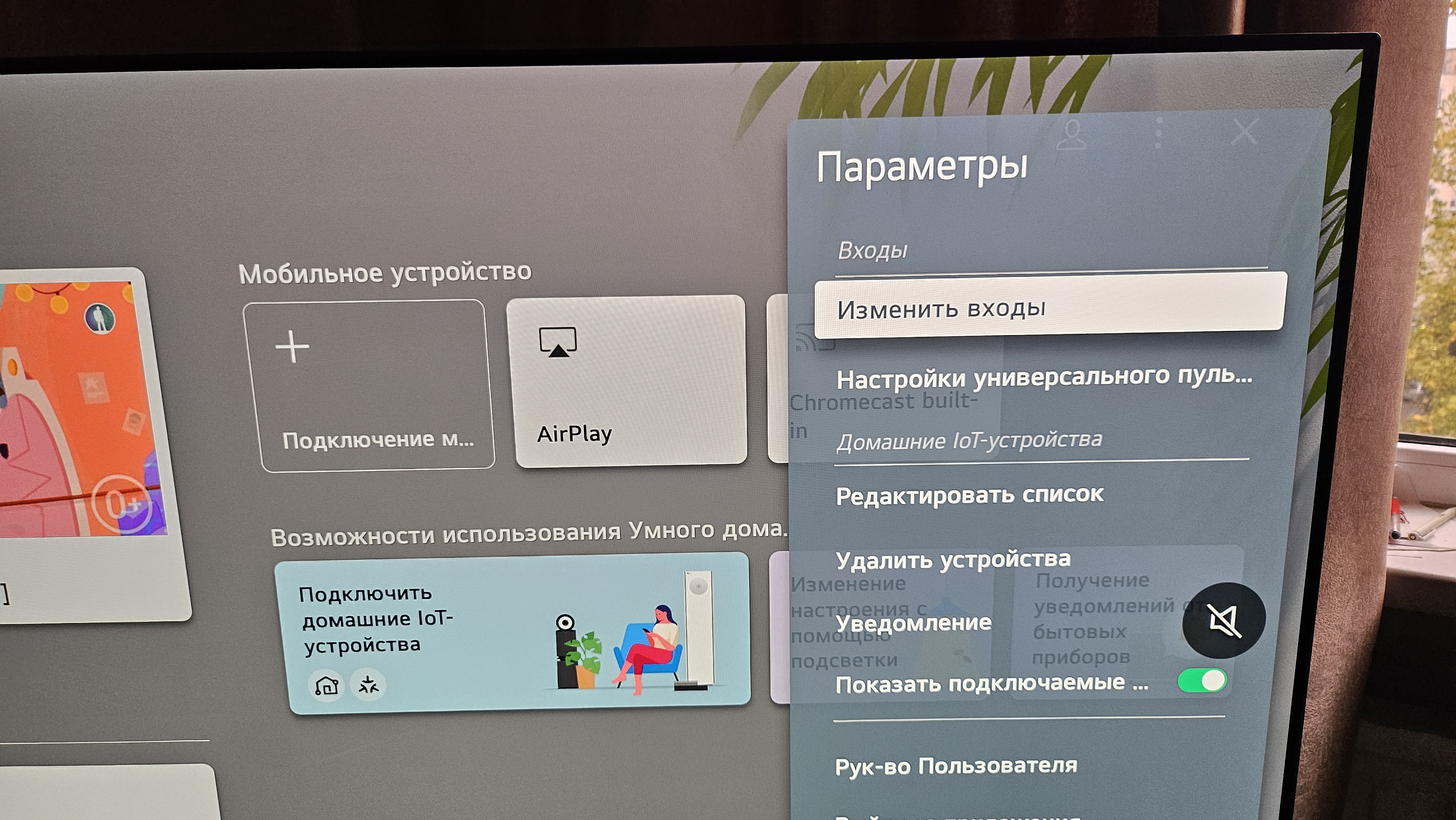 1) Что появляется при нажатии кнопки Входы, кроме списка источников? В этом ряду есть какая-то еще позиция/плашка/пиктограмма/значок, при нажатии на который будет осуществлен переход в Домашний концентратор (на моей старой webOS - это с левого края с наименованием Панель управления домом)? Должны попасть во что-то похожее изображенному на 1-й картинке в