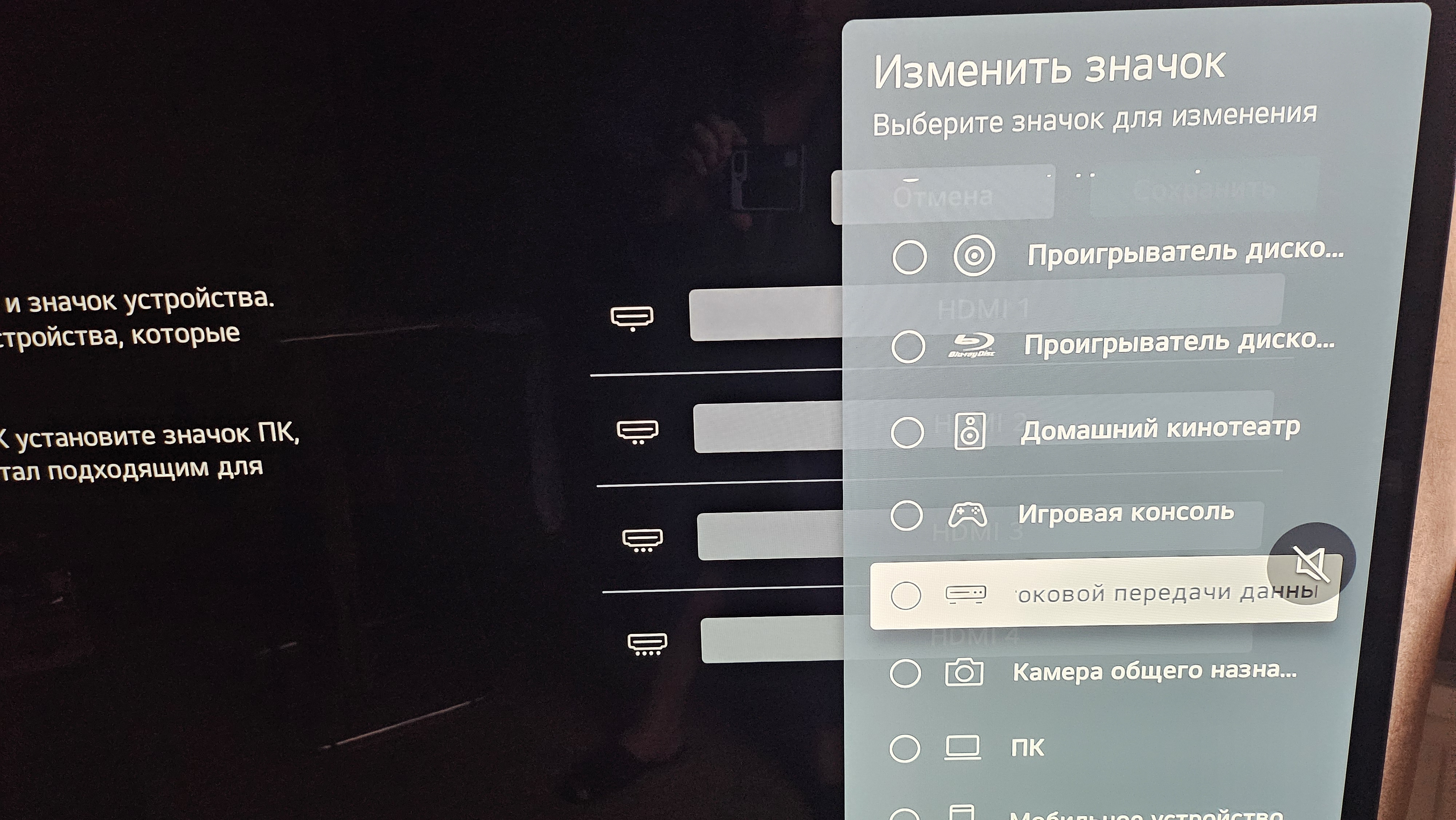 2) Вот там, как раз, в числе входов будет и активный HDMI, который работает в режиме ПК и который следует перевести в иной. Как видно на картинке, сверху справа (НА САМОМ ЭКРАНЕ) будет кнопка экранного интерфейса, обозначенная как три ВЕРТИКАЛЬНЫЕ точки. После ее активации в ней появится позиция ИЗМЕНИТЬ и станут доступны HDMI-входы, для которых возможно изменение. И в их числе будет и активный вход со значком ПК - так вот его/это значок надо изменить на другой.