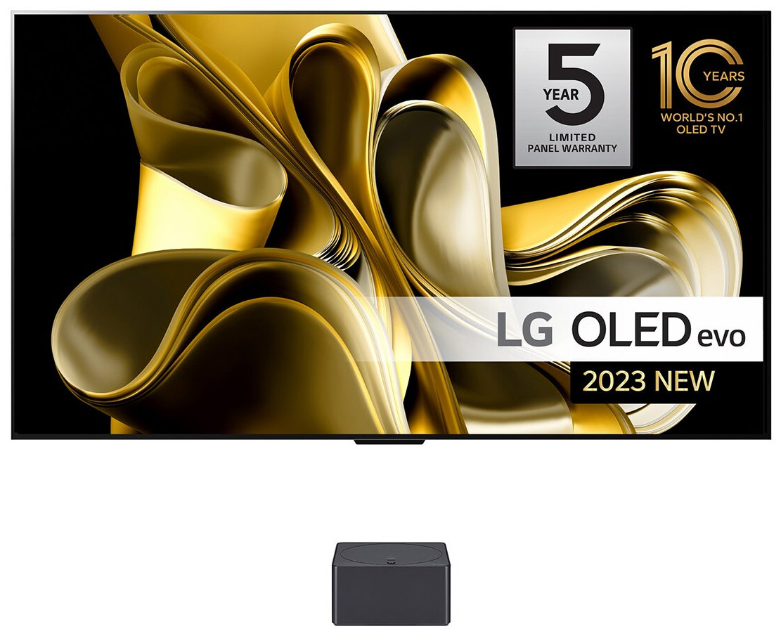 Модель M3 относится к линейке OLED-телевизоров LG 2023 года и выполнена по совершенно новой концепции "ноль подключений" (Zero Connect). Главными новшеством является M3 использование внешнего блока, картинка с которого передаётся на панель ТВ беспроводным способом. Все разъемы (HDMI, USB, Ethernet и цифровой оптический выход) находятся на приставке-передатчике, сам телевизор не имеет ни одного порта