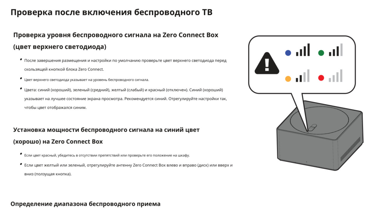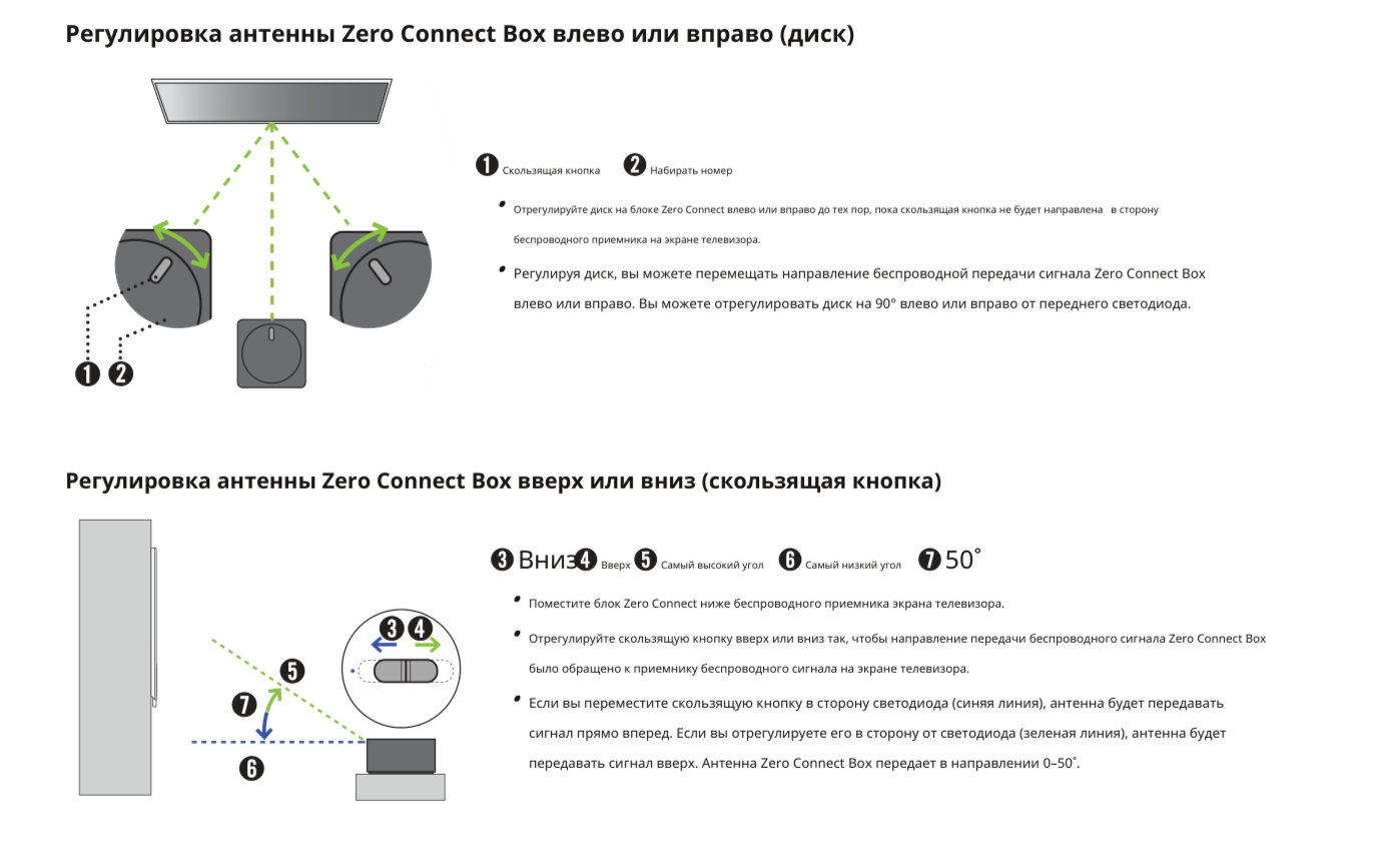 Система передачи данных блока Zero Connect оснащена технологией, позволяющей ей обходить объекты, которые могут помешать прохождению сигнала, и рассчитана на расстояние до 10 м между Zero Connect и экраном.