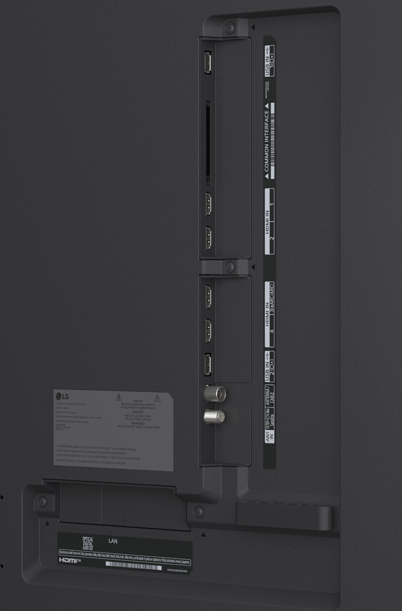 Задняя панель телевизоров LG 50/55/65/75/86QNED87 оснащена следующими интерфейсами: один порт LAN (со скоростью 100 Мбит/сек). Что касается аудио, то на этой же панели расположен только оптический аудиовыход, выход 3,5" для наушников отсутствует.