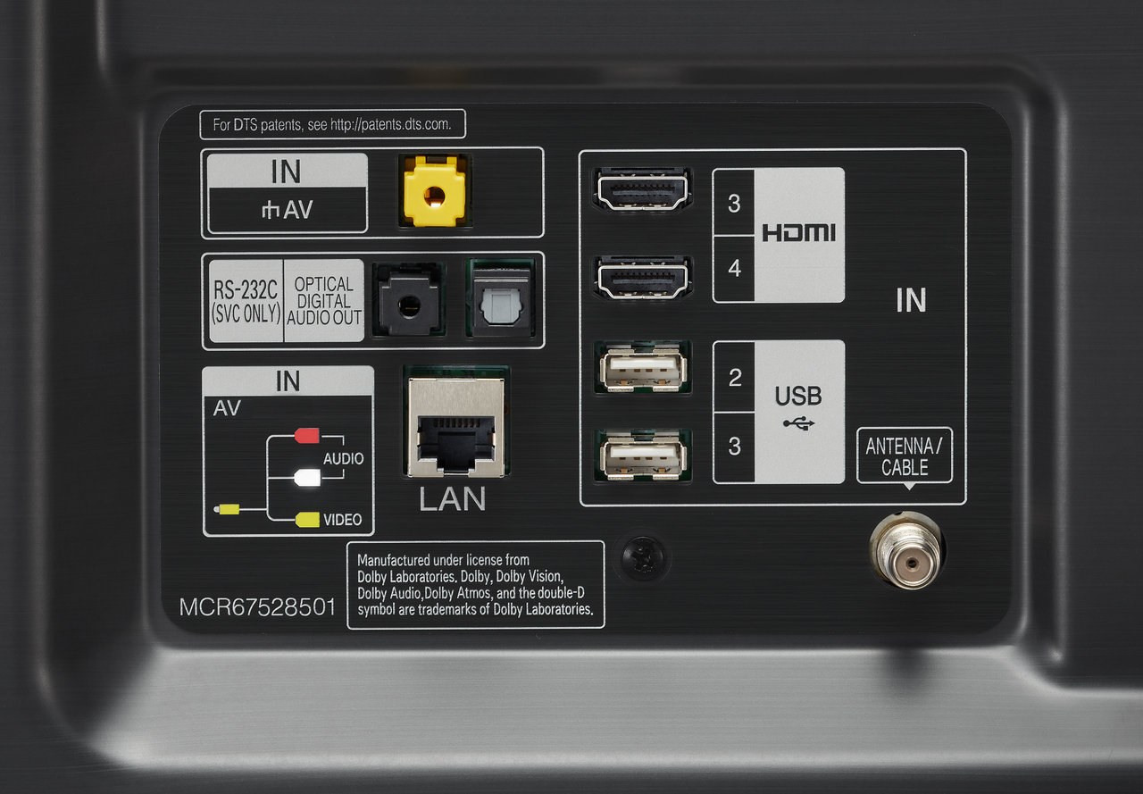 Задняя панель телевизора LG SM8500 оснащена следующими интерфейсами: два входа HDMI, 2 антенных входа (для спутникового и кабельного/эфирного ТВ), компонентный AV-вход (в версии для США), один порт LAN (со скоростью 100 Мбит/сек), два порта USB (версии 2.0). Что касается аудио, то на этой же панели расположен только оптический аудиовыход, выход 3,5" для наушников отсутствует.