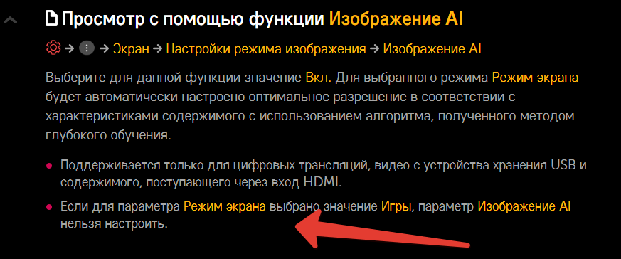 Единственное что все равно остается неактивным - функция Изображение AI, которой думал скормить игровой процесс, чтоб тв сам подстроился.