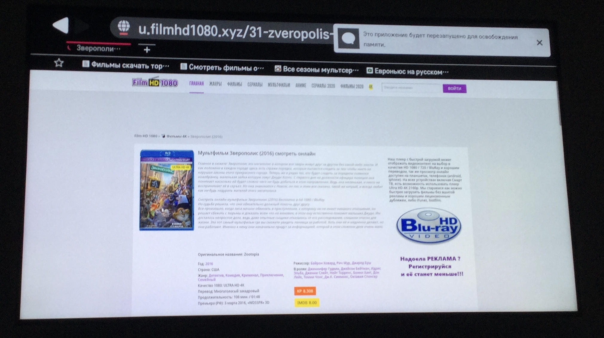 Этот ТВ предназначен для просмотра стриммингового адаптированного 4к-контента через специальные оптимизированные приложения, где никогда ничего подобного не происходит. Используя его браузер, предназначенный для других целей, в сценарии онлайн-просмотра пиратского контента, будьте готовы к подобным сюрпризам.danfrid писал(а):Просто тв, предназначенный для просмотра 4к, предупреждает, что ему памяти не хватает для просмотра 4к и крашится в итоге