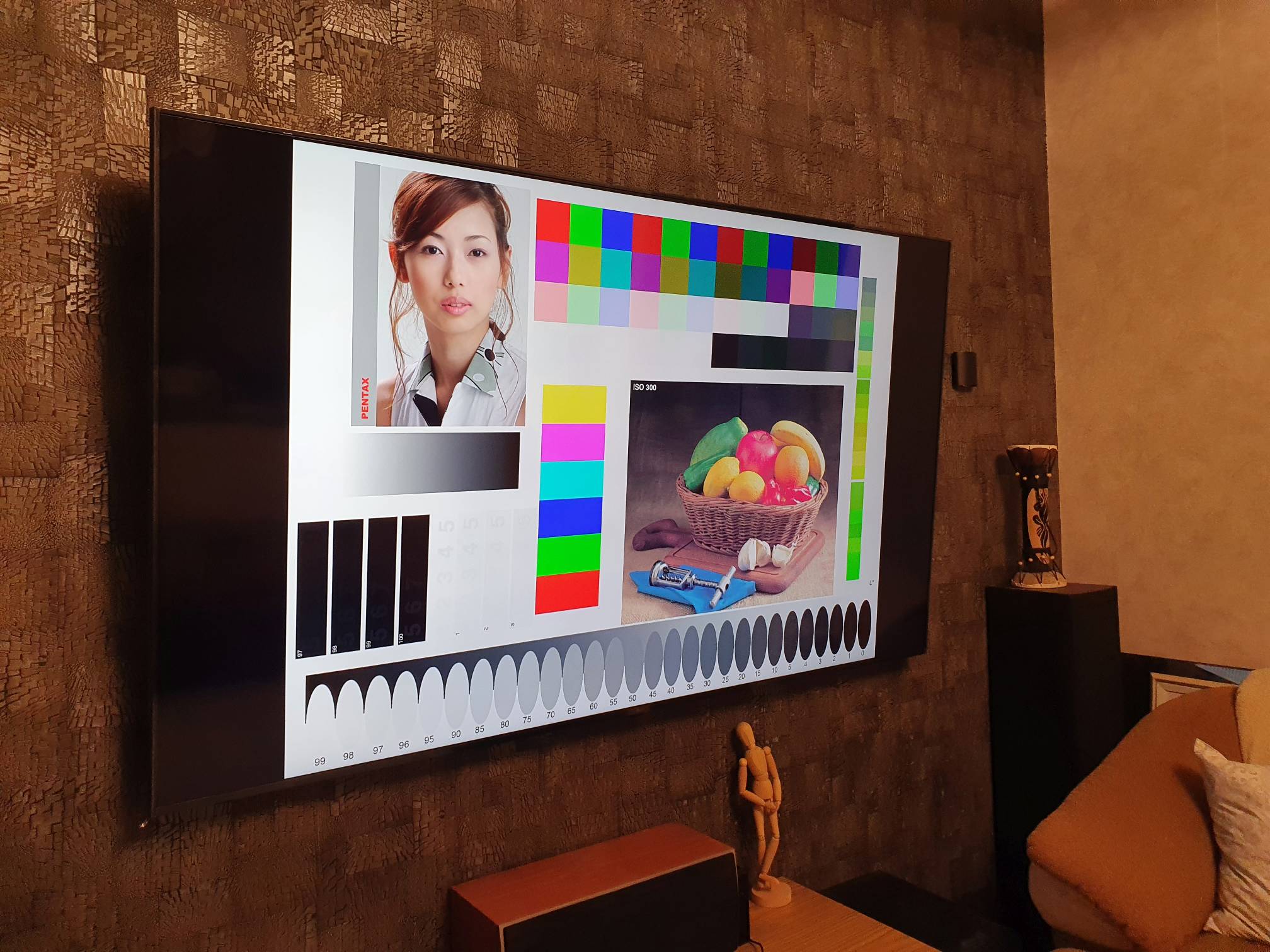 Прочитав абзац выше, вы, наверное, подумаете, что я купился на такую глубину черного в модели 70up77 за счет накрученных улучшайзеров картинки с завода по умолчанию. Нет, хочу вас обрадовать, что все настройки яркости, контраста, насыщенности, гаммы и прочих регуляторов я сначала произвел по калибровочной картинке до такого состояния, чтоб мой глаз видел максимально натуральные цвета. При этом я вырубил все улучшайзеры, автоконстрасты и прочее. И только тогда, после настройки режима «ежедневная картинка» я перешел к изучению черного с этими же настройками вечером в темноте. Далее, в процессе эксплуатации, я подключил несколько улучшайзеров по минимуму, типа автоконстраста в режиме «низко». И тогда черный стал еще великолепнее. Использую вот такую картинку для настройки цвета