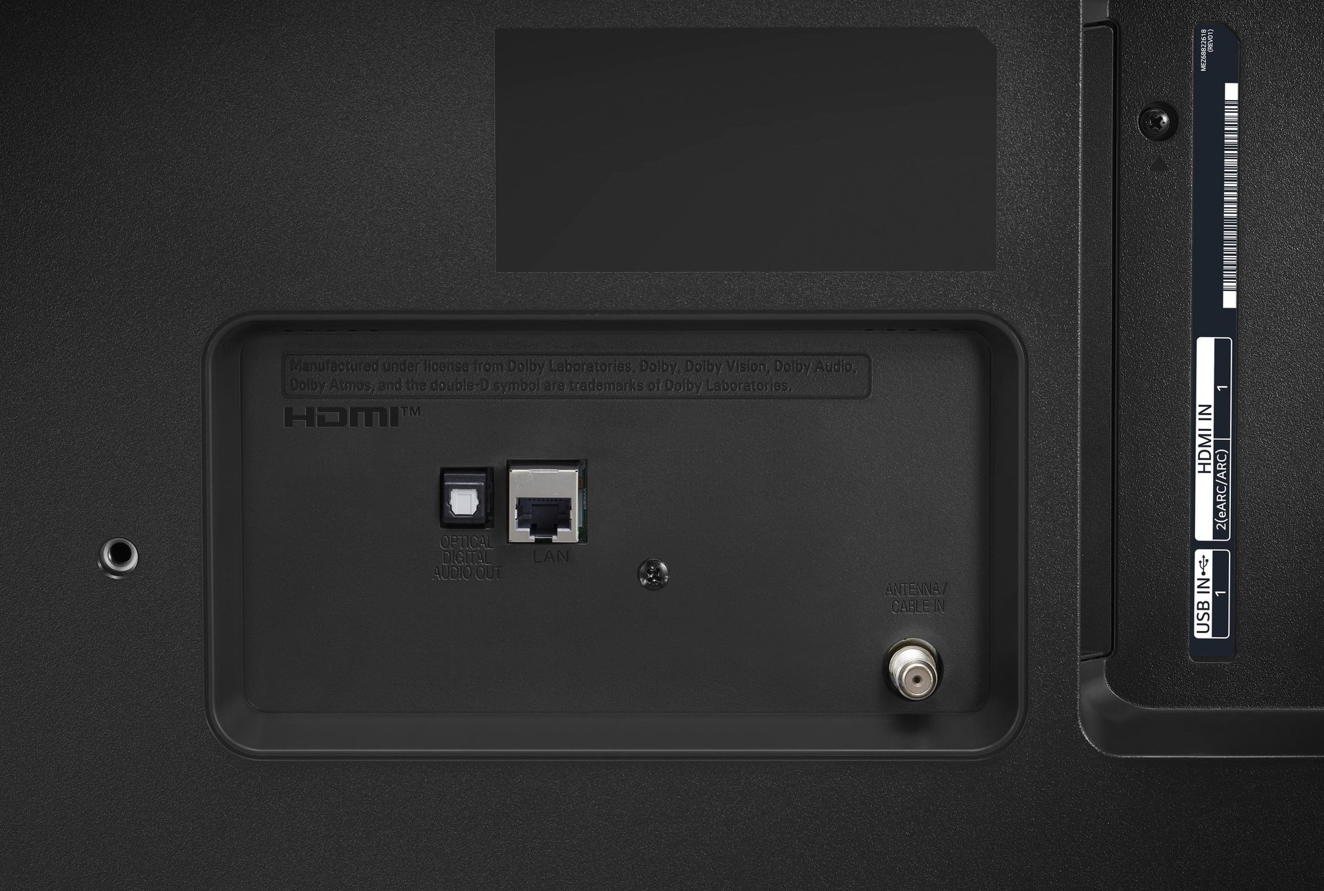 Боковая панель UQ7500 оснащена одним портом USB (версии 2.0), двумя входами HDMI v.2.0 (один из которых совместим с ARC и eARC), двумя антенными входами (для спутникового и кабельного/эфирного ТВ) и слотом условного доступа CI+.