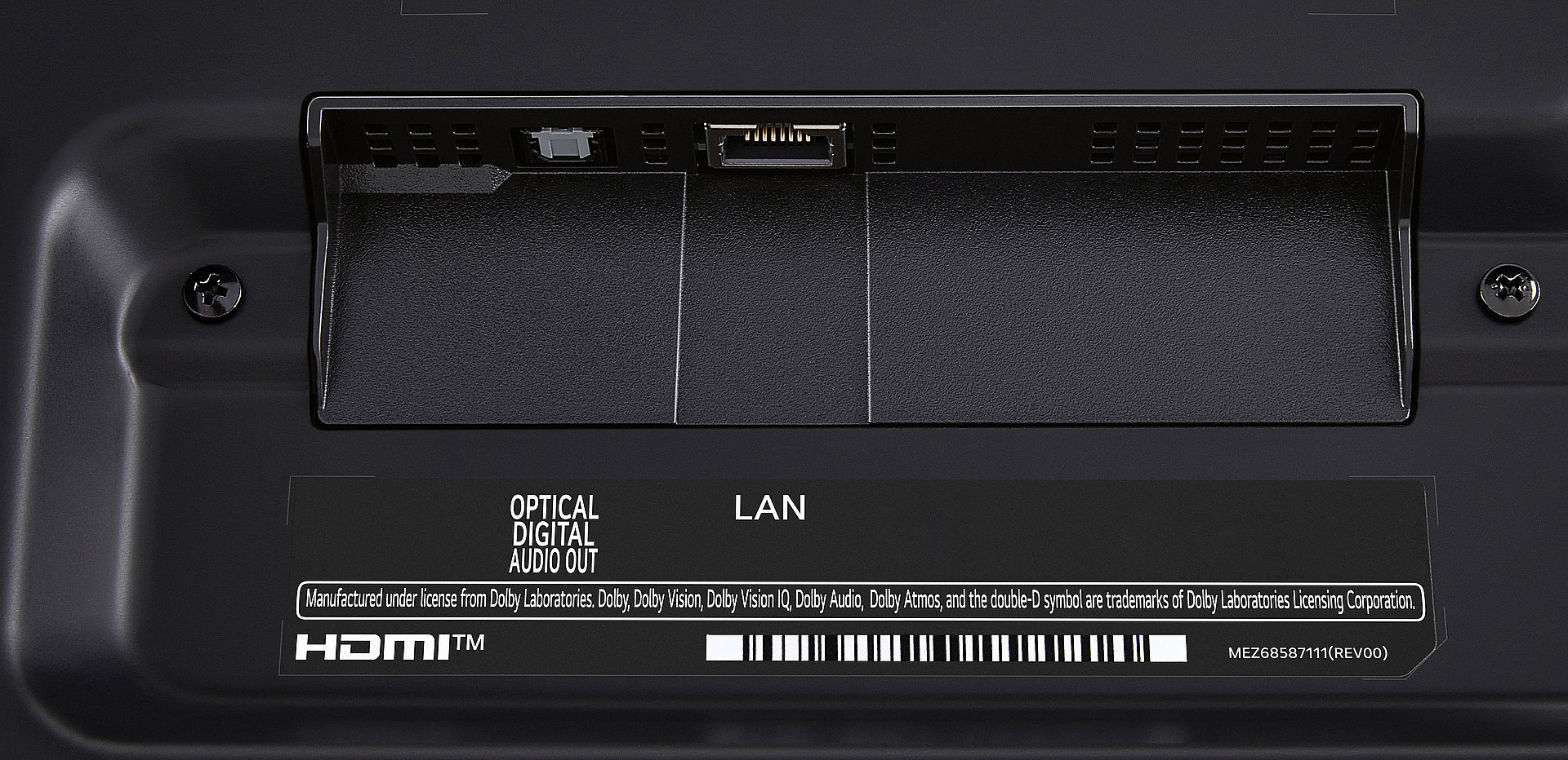 Задняя панель моделей 43UR9100, 50UR9100, 55UR9100, 60UR9100, 65UR9100, 70UR9100 и 75UR9100 оснащена следующими интерфейсами: один вход HDMI, один порт LAN (со скоростью 100 Мбит/сек) и один порт USB (версии 2.0). Что касается аудио, то на этой же панели расположен только оптический аудиовыход, выход 3,5" для наушников отсутствует.