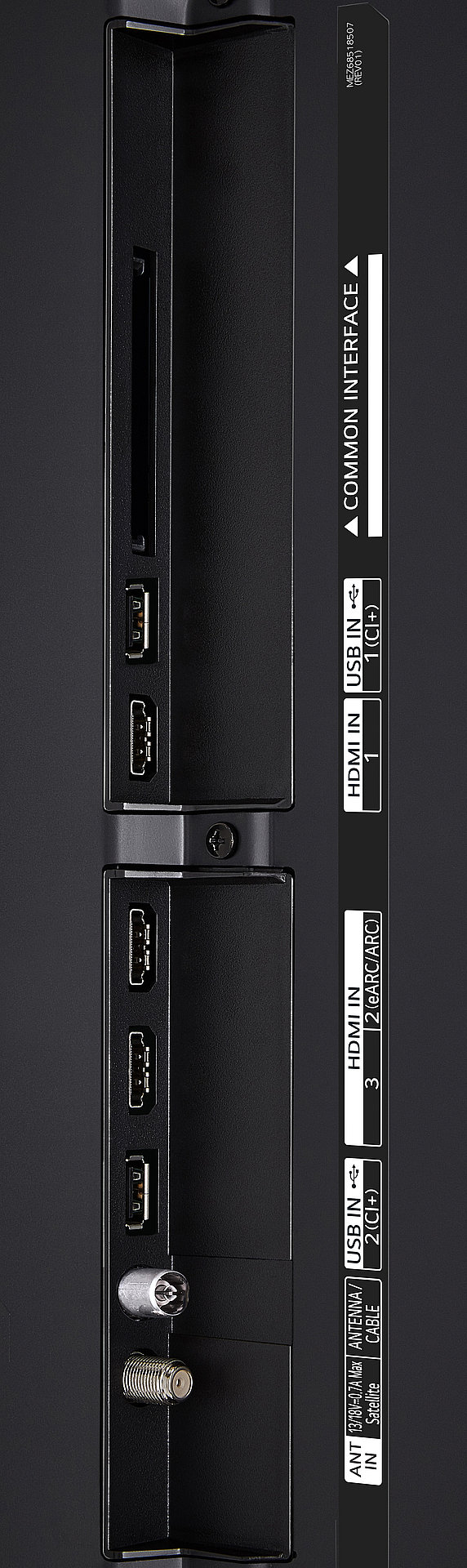 Боковая панель моделей 43UR9100, 50UR9100, 55UR9100, 60UR9100, 65UR9100, 70UR9100 и 75UR9100 оснащена одним портом USB (версии 2.0), двумя входами HDMI v.2.0 (один из которых совместим с ARC и eARC), двумя антенными входами (для спутникового и кабельного/эфирного ТВ) и слотом условного доступа CI+.