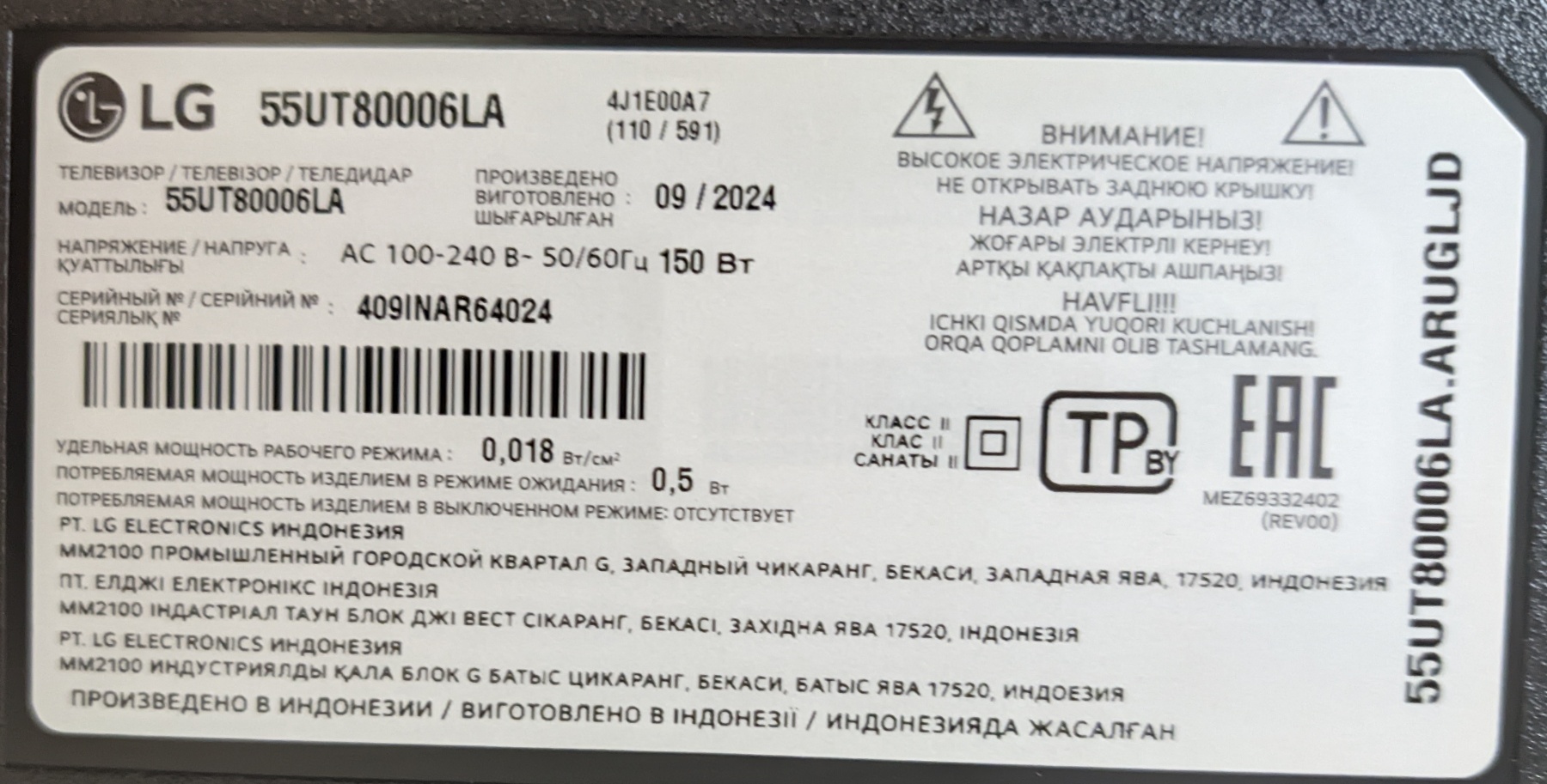 Подскажите определить тип матрицы в телевизоре LG 55UT80006LA.ARUGLJD