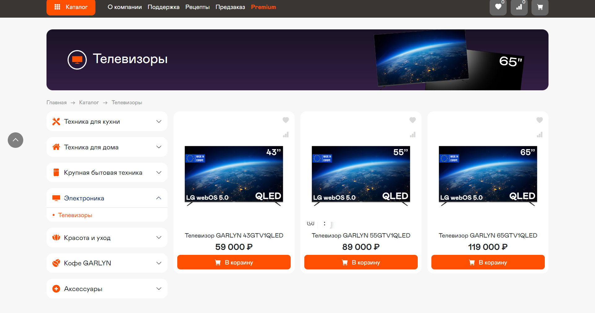 Российский производитель бытовой техники под маркой Garlyn сообщает на своём сайте о наличии 3 моделей телевизоров на платформе webOS.