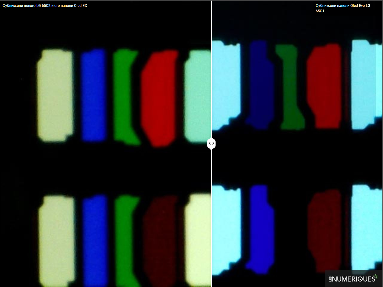 LG для серии G2 заявляет об улучшении максимальной яркости на белом фоне на 30% благодаря новому слою за панелью, который позволяет эффективно рассеивать избыточное тепло и максимально увеличивать светоотдачу. Серия C2 использует преимущества различных инноваций, но без дополнительного рассеивающего слоя обеспечивает на 20 % больше яркости.