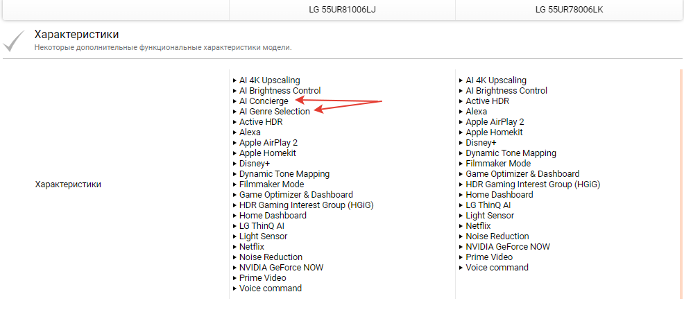 Наличие/отсутствие пульта Magic Remote в комплекте, разное количество разъемов USB/HDMI.