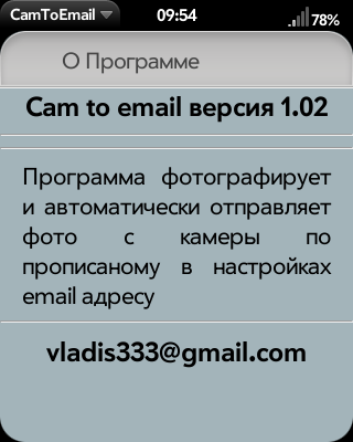 Идею проги видно из скриншотов. Программа одним кликом отправляет снятое на камеру по настроенному заранее емейлу.