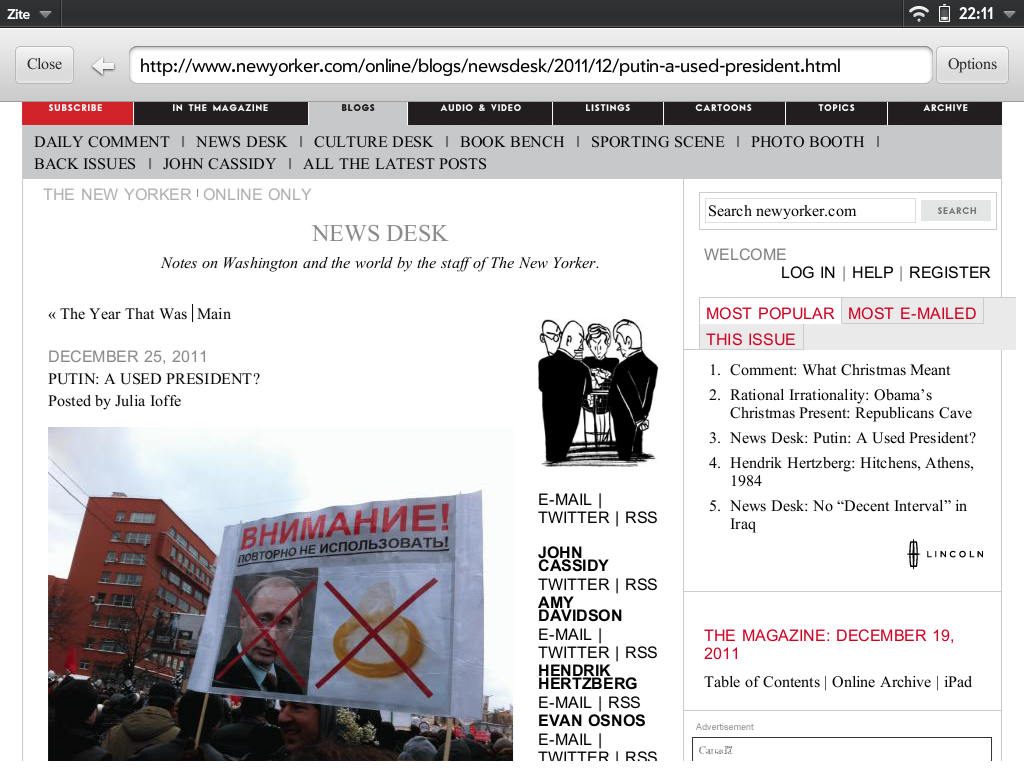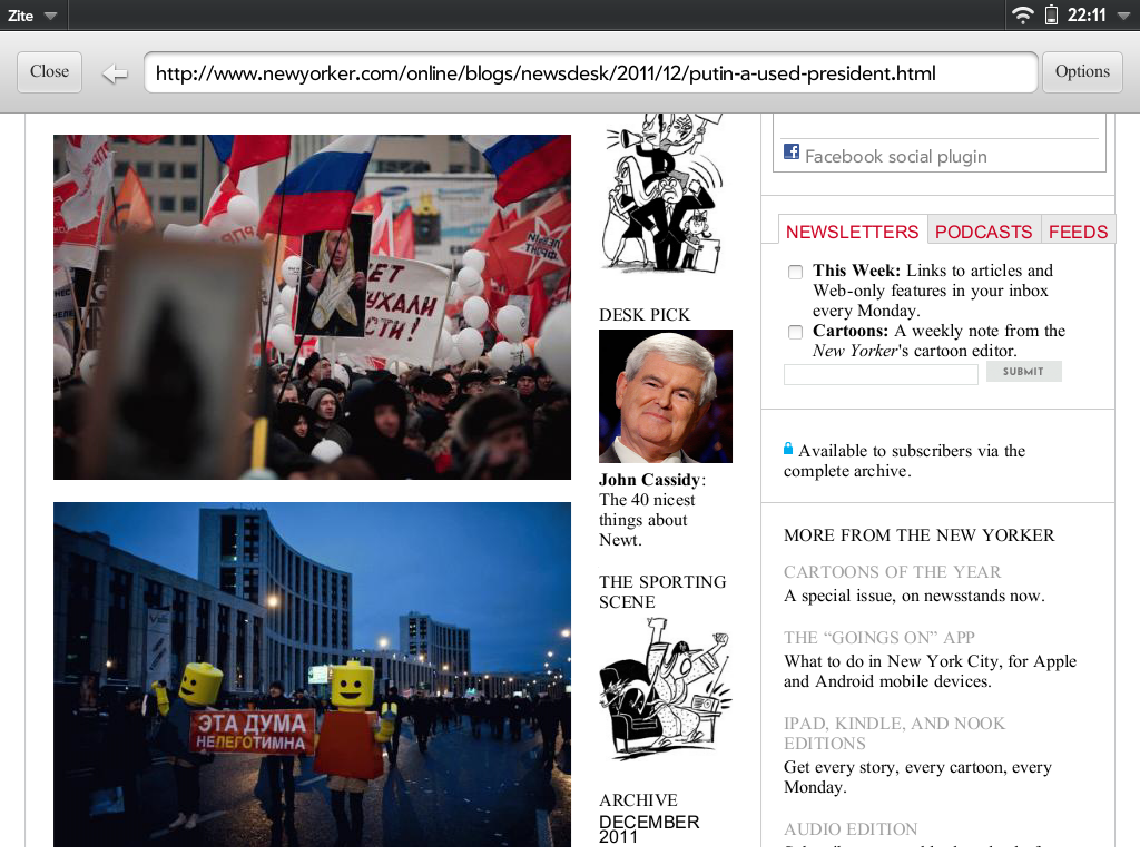 Третье: отображение статей. Практически все статьи и новости отображаются единообразно – приложение подгружает изображения и текст с веб-страницы. Если же сайт запрещает делать это, то Zite открывает сайт, на котором находится материал.