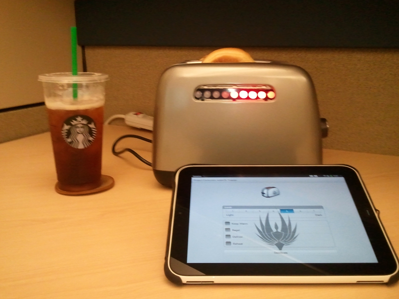 Система функционирует на базе платы Arduino, которая подключается к тостеру и управляется с планшета по протоколу Bluetooth. Система webOS не славился портируемостью, поэтому неизвестному энтузиасту без проблем удалось занять бывшую свободную нишу - кухонные тостеры.