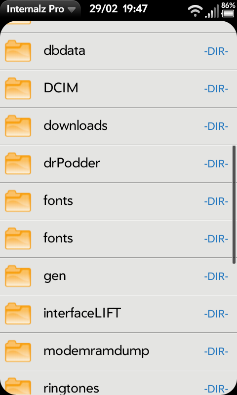 Патч webOS Scrollbars позволяет добавлять полосу прокрутки к текстовым полям в приложениях Web, Email, Photos, Contacts, Accounts и Exhibition. Пока поддерживаются только Mojo и Mojo2-приложения, т.е. телефоны. В дальнейшем будет поддержка TouchPad и webOS 2.1.x