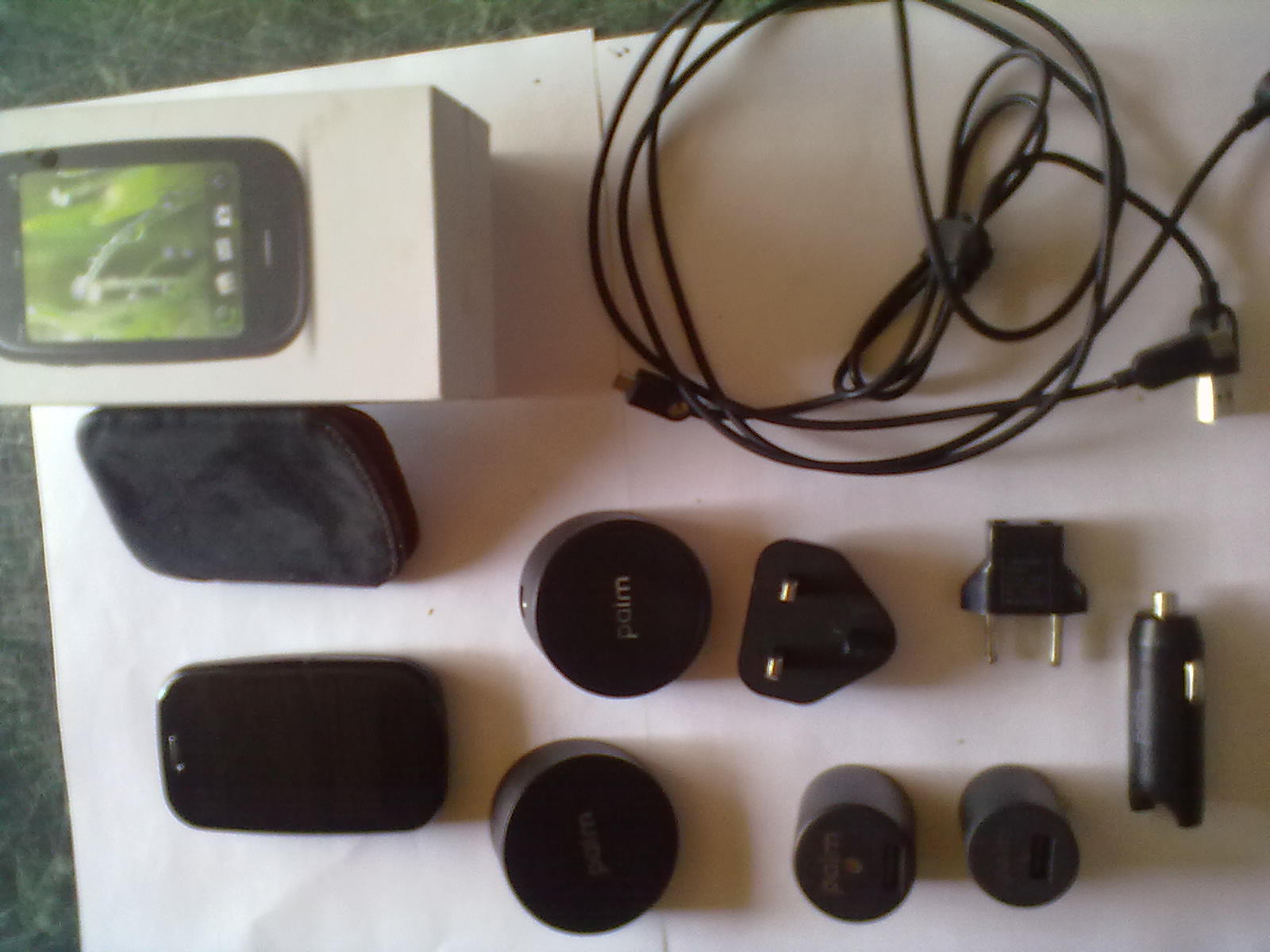 В комплекте 2 "камешка", 2 сетевых адаптера, автомобильный адаптер, 3 микро УСБ, наушники, чехол родной, коробка.