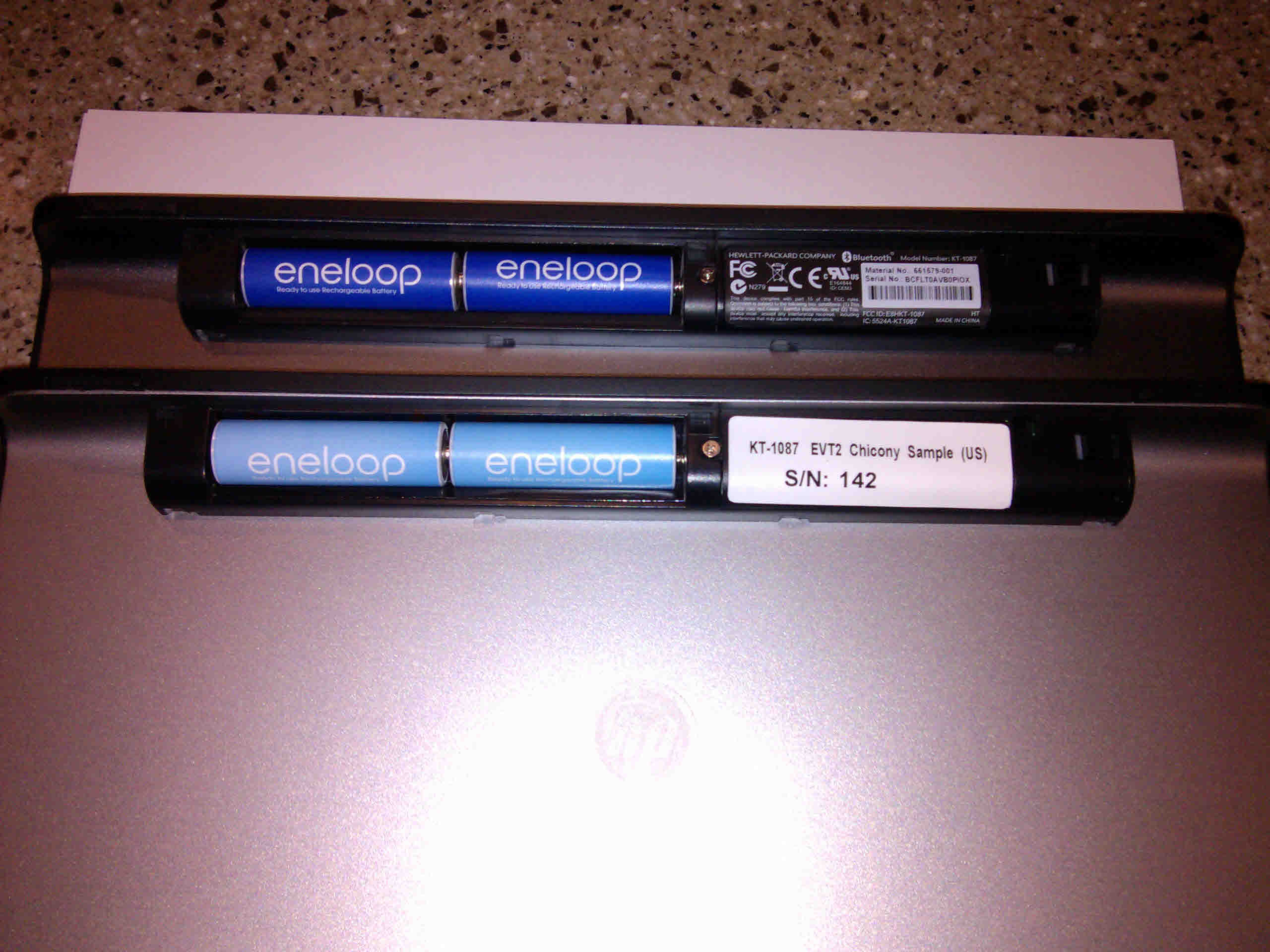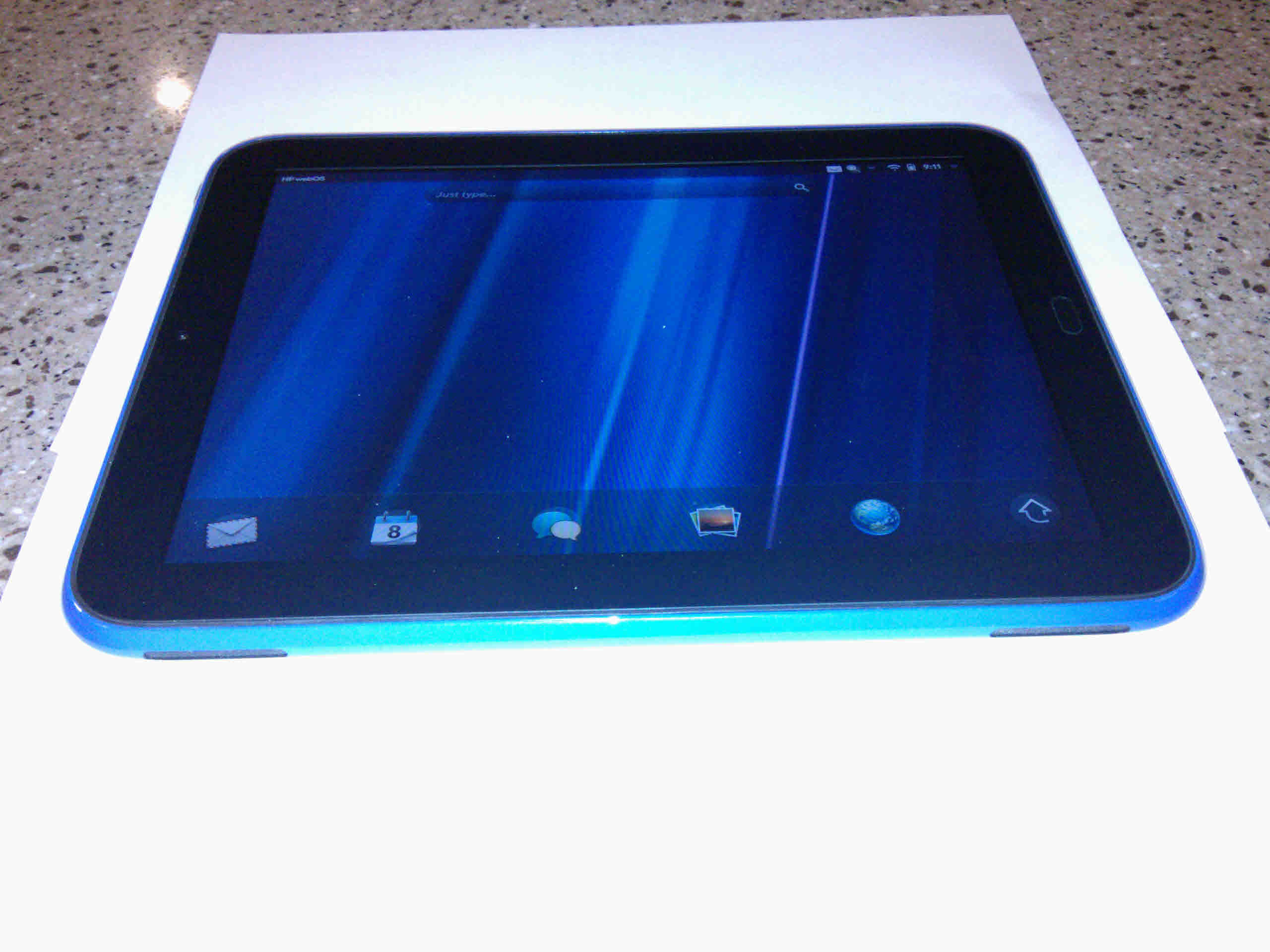 Пользователю dcleveng33 посчастливилось купить планшет HP TouchPad с корпусом необычного синего цвета. В комплекте также прилагалась клавиатура Chicony. Ни одного упоминания о том, что тачпад выпускался в корпуса других цветов, за исключением белого и черного, до этого не встречалось. Отличительная черта синего девайса - гнездо под сим-карту отсутствует. Артикул клавиатуры (EVT2 Chicony' Sample (US) S/N 142) тоже не соответствует стандартной внешней клавиатуре для HP TouchPad.