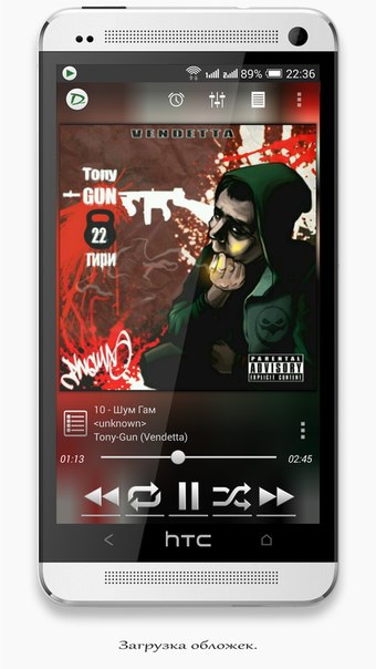-регулирование громкости воспроизведения прикосновением к обложке песни;