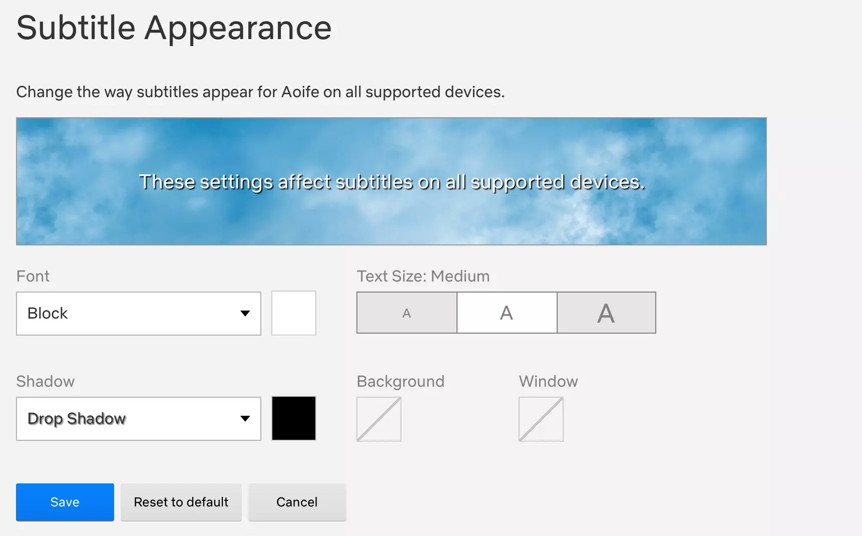 Наталья Торжанова писал(а):Чтобы персонализировать субтитры, Вам необходимо подключиться к веб-версии Netflix. Вы можете выполнить поиск в настройках своей учетной записи или, что еще проще, нажмите на эту ссылку и сразу перейдите на страницу настроек субтитров: