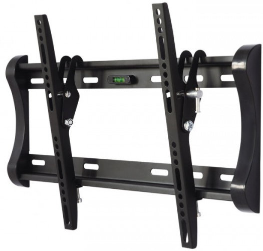Наклонный кронштейн для телевизора — такой тип крепления довольно распространен, позволяет изменять вертикальный угол наклона телевизора. Занимает меньше места, чем наклонно-поворотный кронштейн, а также отличается меньшей стоимостью (за счет менее сложной конструкции). Не имеет возможности регулировать угол поворота телевизора по горизонтали. Часто используется в залах. Максимальный угол наклона может составлять 20 градусов.