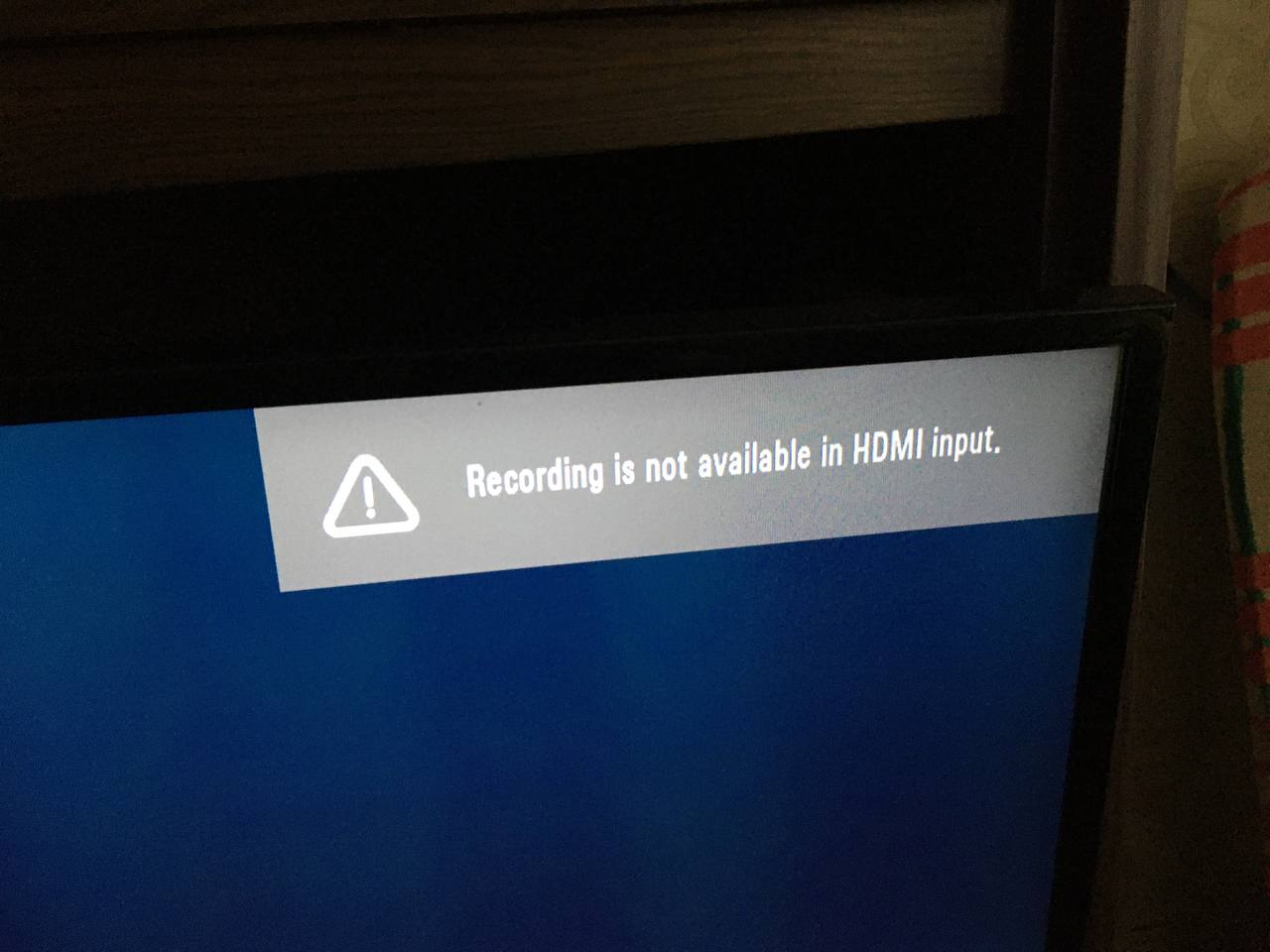 SerpentRouge писал(а):Хочу сделать запись с экрана телевизора, подключил переносной жесткий диск, на пульте нажимаю кнопку REC и выбивает ошибку: "Recording is not available in HDMI input"