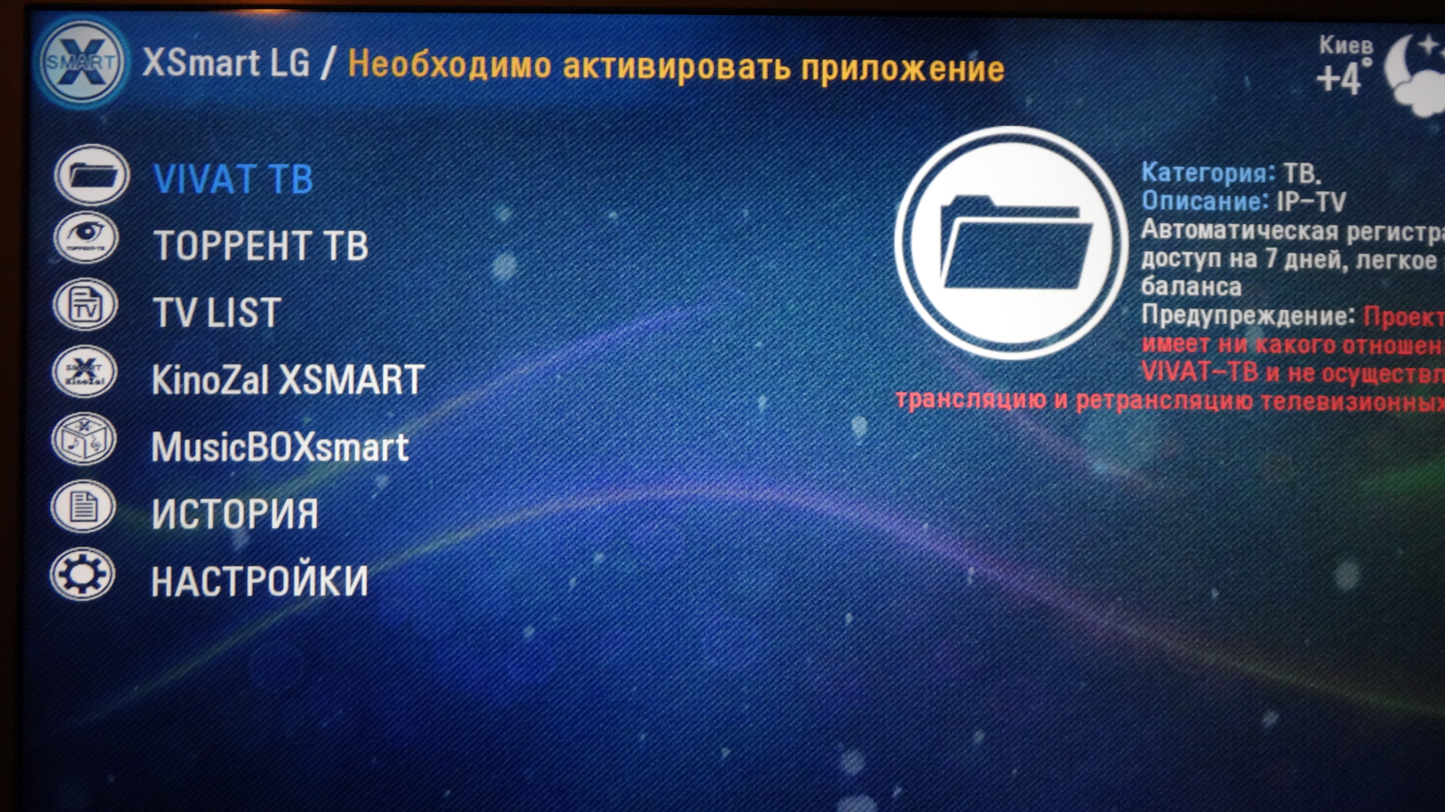 3.LG Smart TV на платформе WebOS через приложение Tvigle, Deezer, 1auto, iAN, окко, lifeshow, smartup, sporx, tenet, tv3, viewster. Если эти приложения отсутствуют, убедитесь, что страна использования смарт тв в настройках указана Украина или Россия.