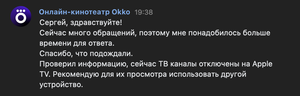 Столкнулся с проблемой воспроизведения фильмов в 4K и 4K HDR в сервисе OKKO на тв C3. Выскакивает ошибка 60109 «Убедитесь, что ваше устройство подключено к интернету». Интернет по проводу, тест скорости зашкаливает. Такая проблема с фильмами «Джентельмены», «Бесконечность» и некоторыми другими, при этом «Беспринципные в деревне» прекрасно идут. Поддержка OKKO ничего не дала (там стандартные отговорки, что что-то с интернетом). Может кто-то сталкивался с этим? Как это «вылечить»?