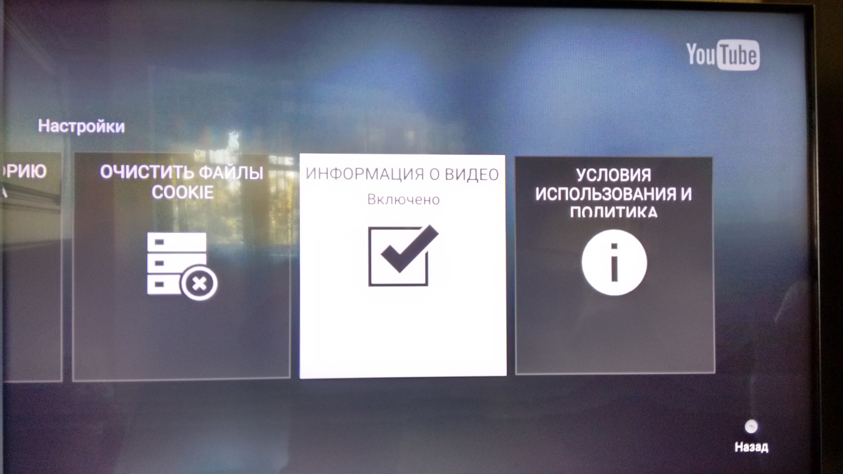 Приложение Youtube на телевизоре