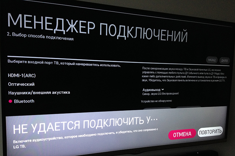 Re: Подключение саундбара к LG 42LB652V-ZA через Bluetooth