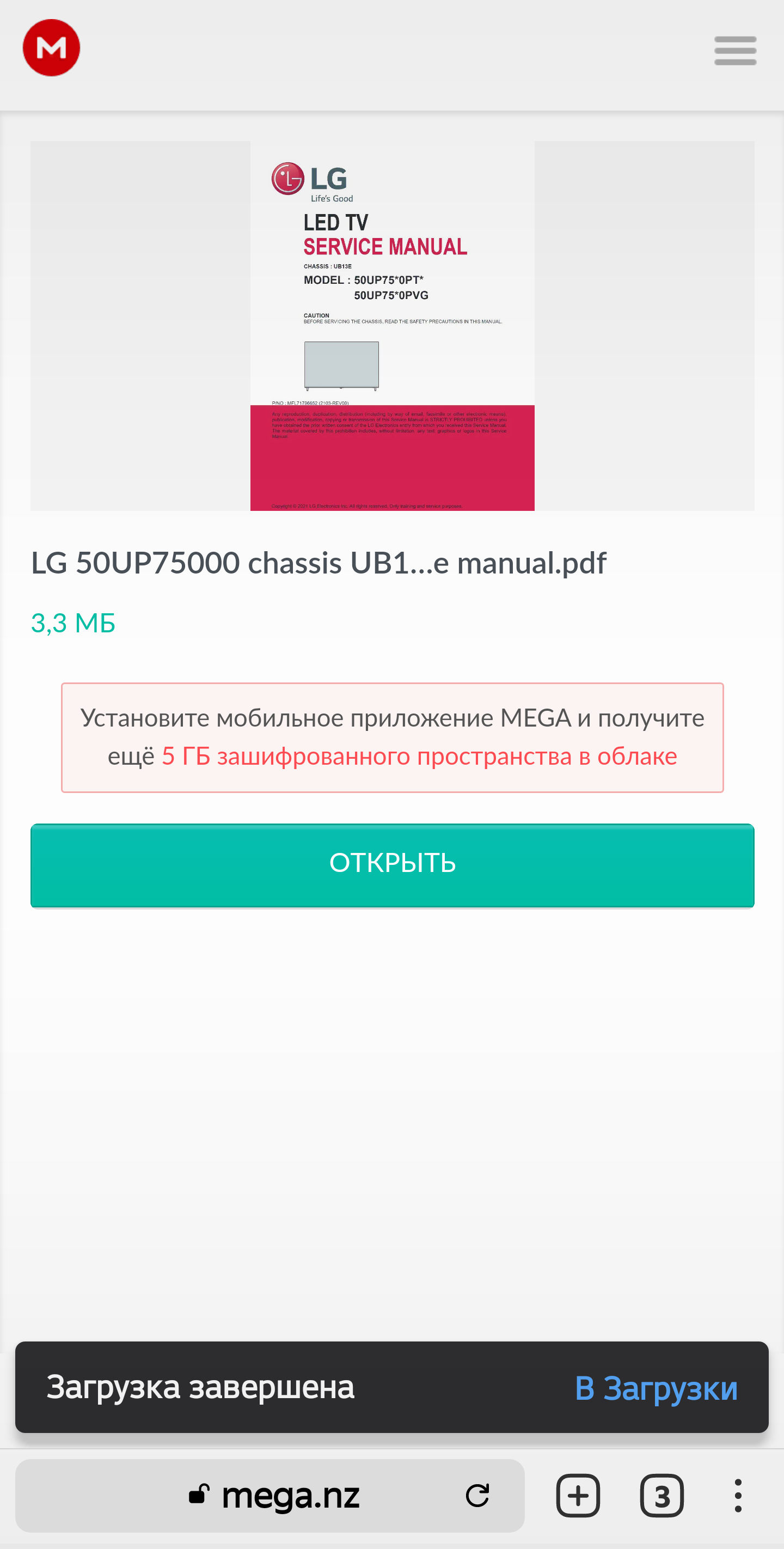 Здравствуйте, мне нужно скачать сервис мануал к телевизору LG 50" UP75006. Подскажите пожалуйста рабочую ссылку. Ссылка в шапке не работает желательно не на mega.nz