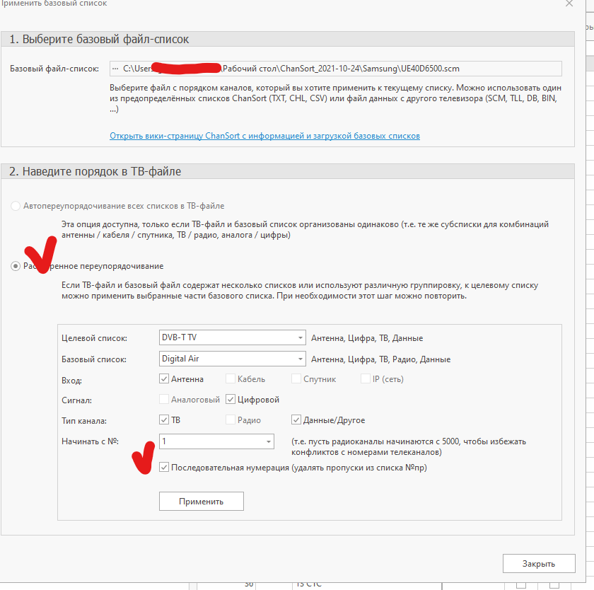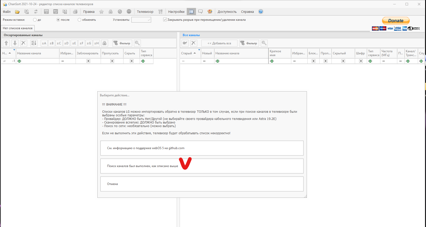 Если в вашем списке есть, например, "Das Erste HD" в программе номер 1 (а также mybe 100 и 1000), ваш список предварительно отсортирован, это список Astra 19.2E Germany и не может быть импортирован обратно в телевизор.