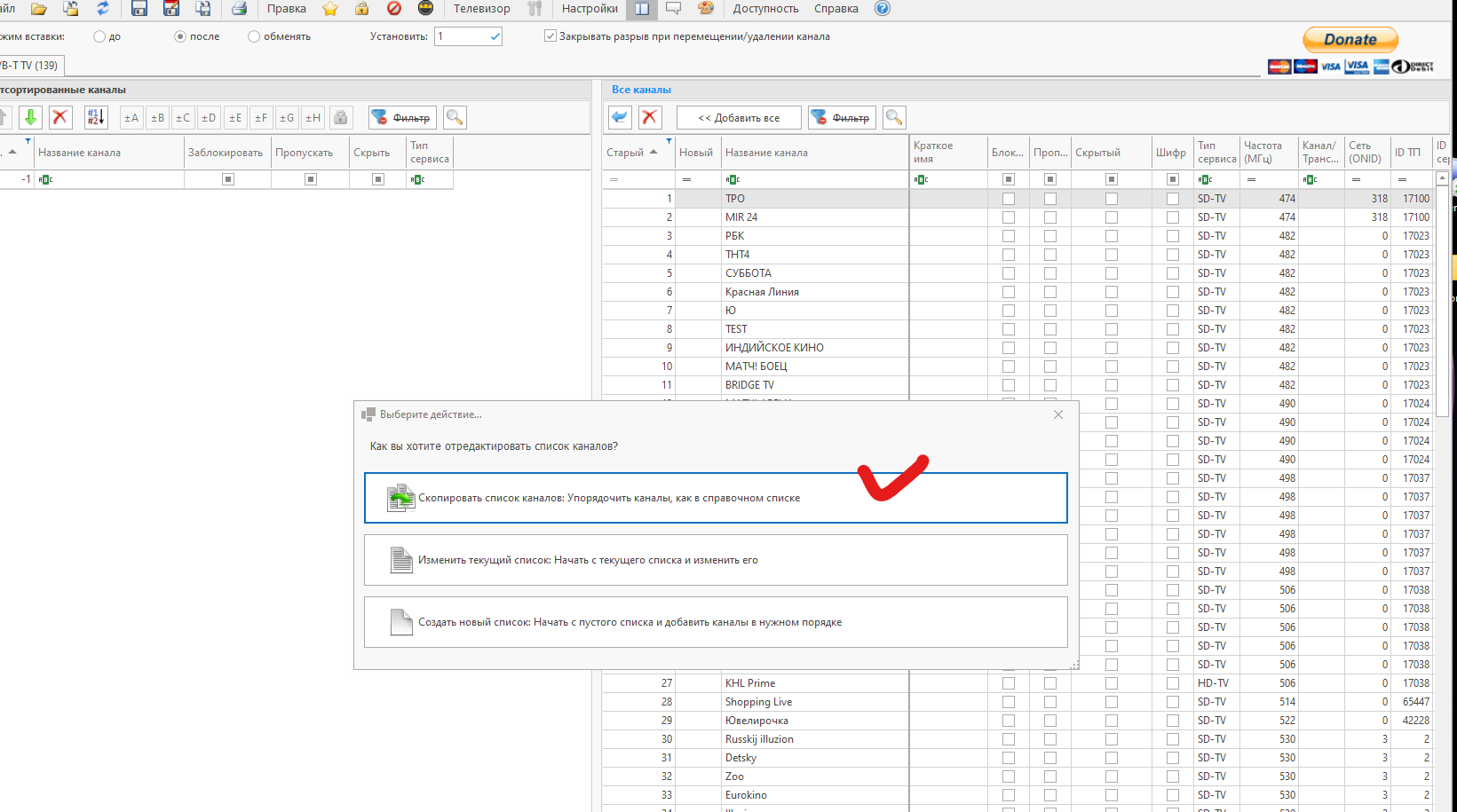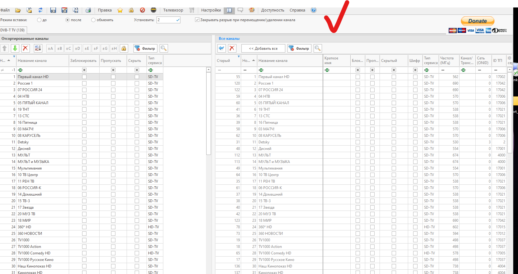 У вас должен получиться список, который отсортирован только по частоте / транспондеру без полезного логического порядка в номерах программ.