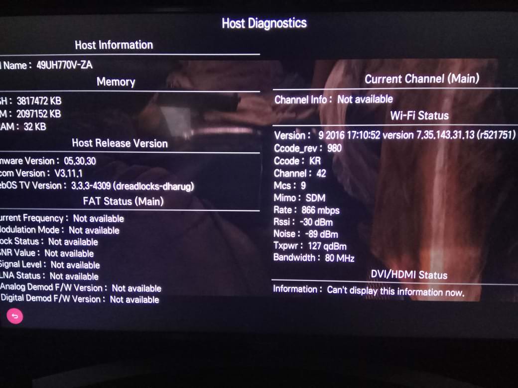 Можете сделать снимок скорости соединения телевизора из меню Host Diagnostics?