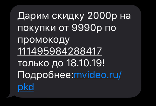 ?М. Видео - новая мощная СМС-акция, в которой можно получить промокоды на скидку до 10000? на покупки
