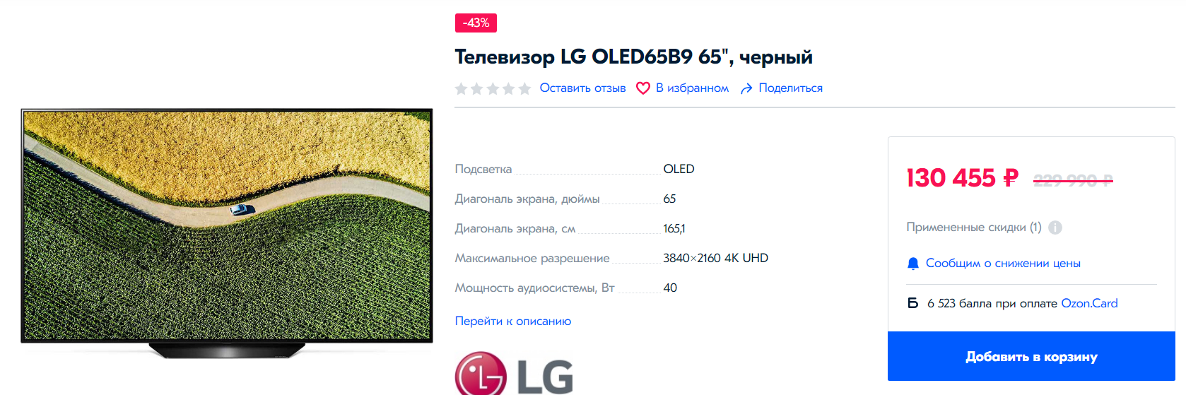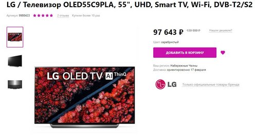 но зато сертифицированный (на Озоне) и доставка бесплатно Ну и может кому будет интересна (тоже неплохая цена)ЛГ ОЛЕД 65B9