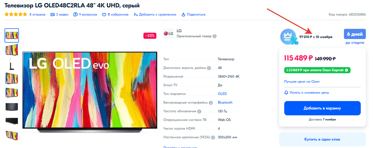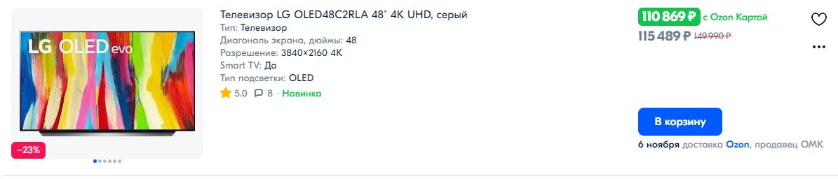 выглядит предложение от филиала Озона в Казахстане на LG OLED48C2RLAгде в характеристиках указаноалександр891 писал(а):OLED48C2RLA 129 990