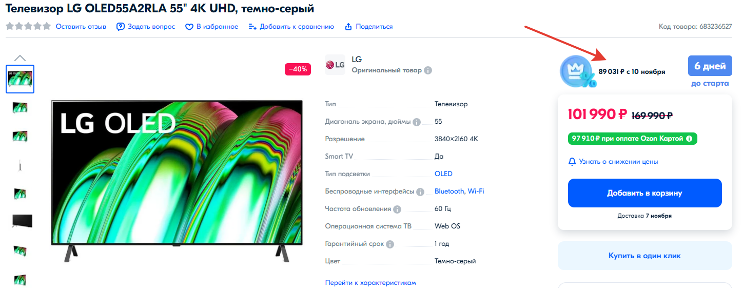 но пока польский вариант 55G2 на Озоне выглядит выгоднейалександр891 писал(а):OLED55G2RLA 249 990